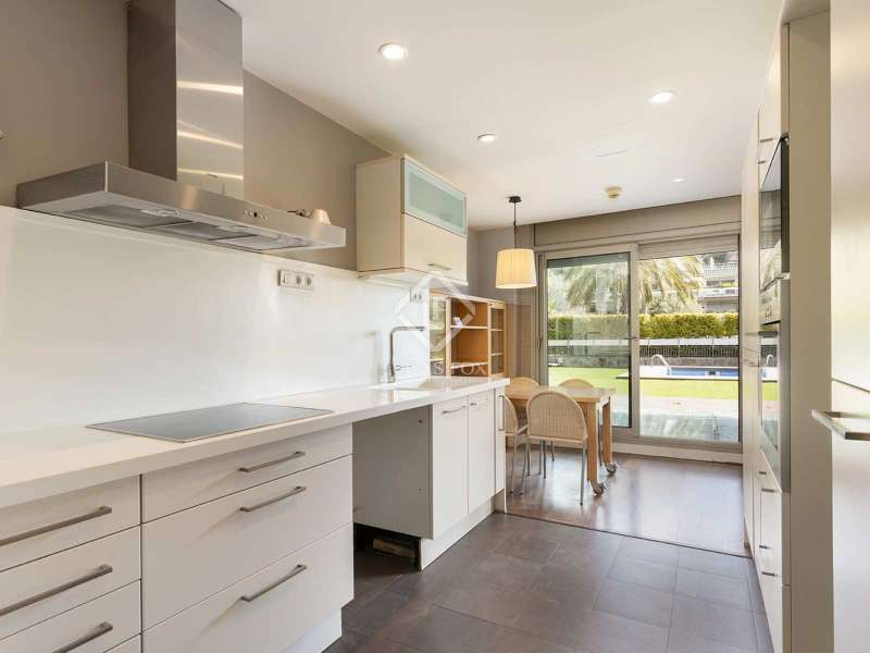 In the exclusive Torre Vilana development , we find a development dating back to 1997 by the developer N&N. It consists of 17,000 m2 of green areas, swimming pools, paddle tennis courts, basketball courts, a football countryside , a children's play area, permanent surveillance in a closed area and security cameras. This beautiful duplex apartment with a garden and a private pool is located in this development. The property is spread over two floors. The main floor houses the day area, where we have a kitchen diner semi-open to the living room by a sliding door and a spacious living room dining room room to enjoy moments of meeting and beautiful views of the private garden with swimming pool. In the night area we have three exterior bedrooms with access to another private terrace that leads to the communal area. The master bedroom suite includes built-in wardrobes and a large bathroom with shower. Two other bedrooms, a bathroom with bathtub and a guest toilet complete this area. A spiral staircase takes us to the ground floor, where we see a large multipurpose area that could be used as a cinema area, study, library or a guest room. In addition, next to it there is a full bathroom , a large utility room and a reserved space with built-in wardrobes. As an informative fact, the ceilings in this area stand out, which are a little lower than those of the rest of the property. The property has two separate entrances for both areas of the apartment, three consecutive parking spaces, high-quality finishes, Technal brand enclosures, Gradhermetic motorized blinds, wenge-colored wooden floors , a kitchen equipped with Siemens appliances , gas heating, air conditioning on both floors of the apartment, a private garden with a swimming pool and a storage room in the boiler room. The development has permanent surveillance in a closed area for your maximum security. Furthermore, it offers easy access to the Ronda de Dalt, international schools, Collserola Park and the Carretera de las Aguas.