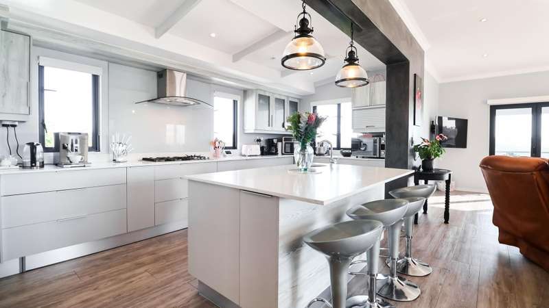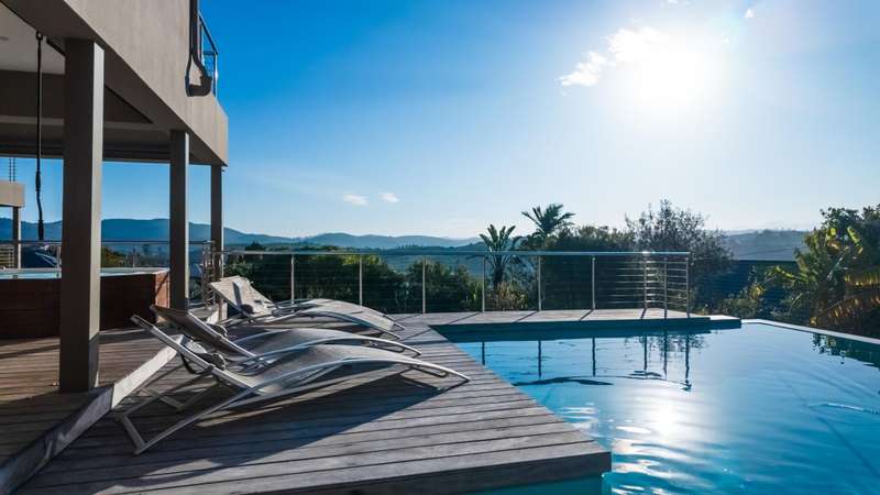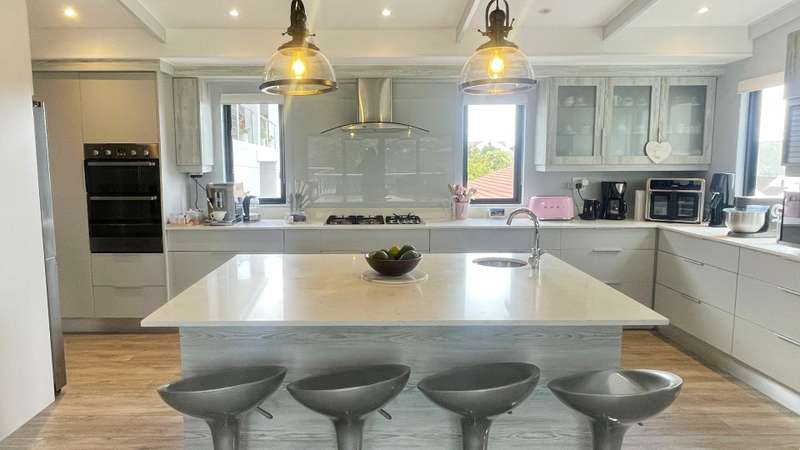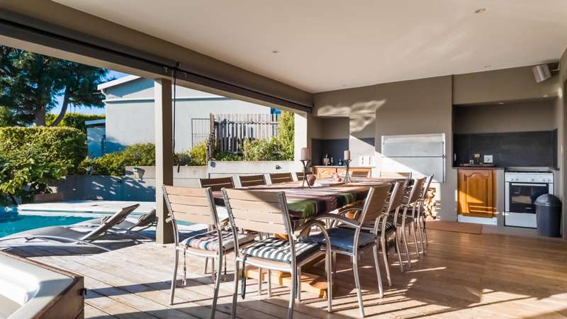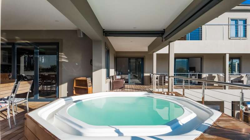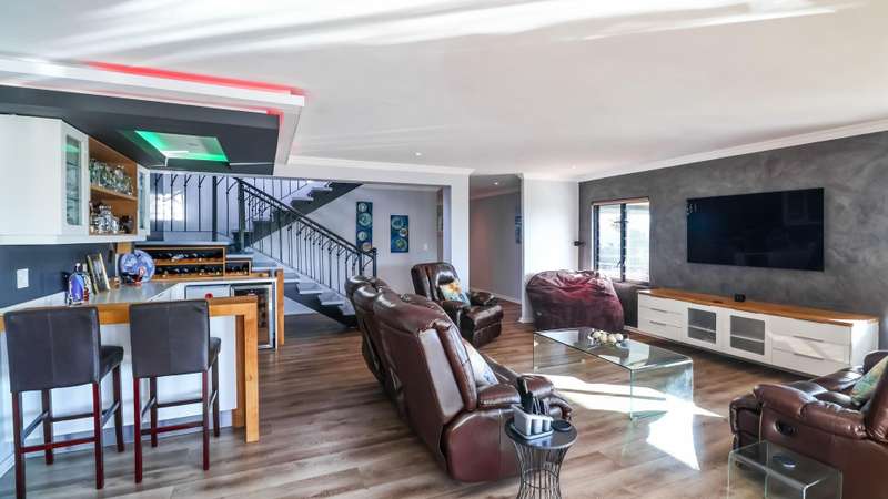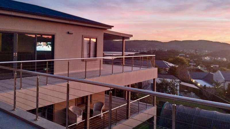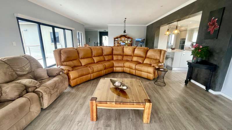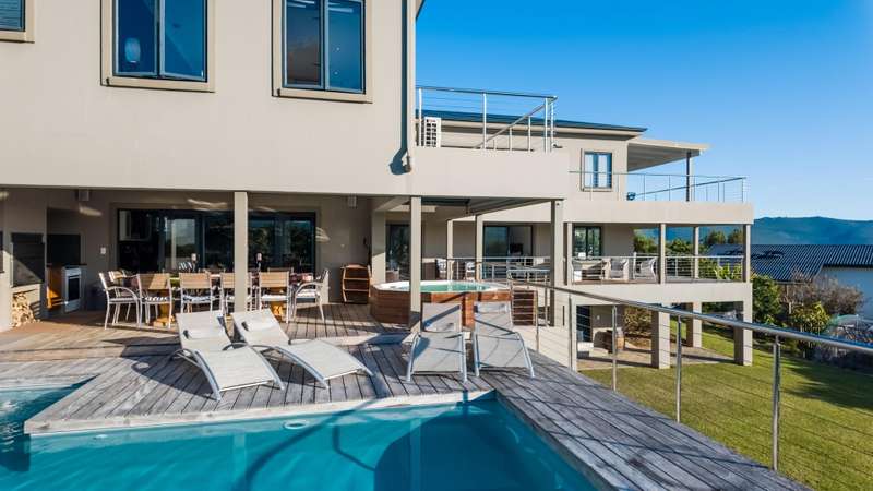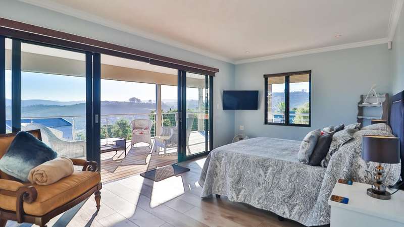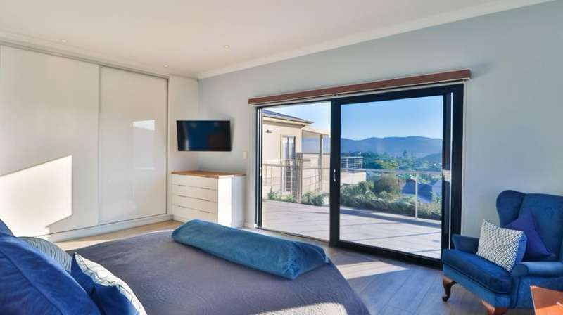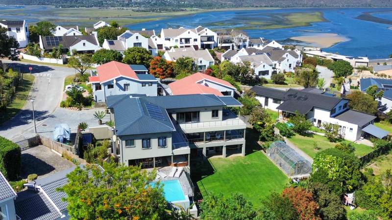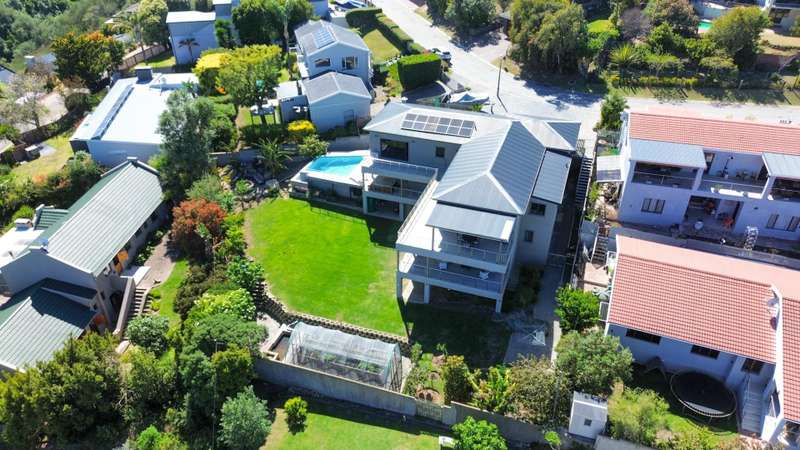 Luxury Living in Knysna Heights SOLE MANDATE This striking property offers spacious, modern living with breathtaking views of the Knysna estuary, hills, and mountains. Entry is at street level with single-level convenience, featuring a large main bedroom with en suite, a private study, and a double garage. The open-plan lounge, dining area, and Caesarstone kitchen flow seamlessly onto a wraparound patio, ideal for entertaining. There are heated towel rails in all the bathrooms. Downstairs offers an entertainment lounge, bar, braai room, and four additional bedrooms?Çöone of which is a self-contained flatlet with a private entrance, perfect for Airbnb. Three bedrooms open onto a generous deck with low-maintenance Belleau wood, a rim-flow pool, and a Jacuzzi with a water recirculation system. Purpose-built for sustainable living, the home includes an 8.5kW inverter, solar power, and a 30,000-litre rainwater harvesting system that feeds the garden and vegetable tunnels. Sold Furnished. Viewings by appointment only.