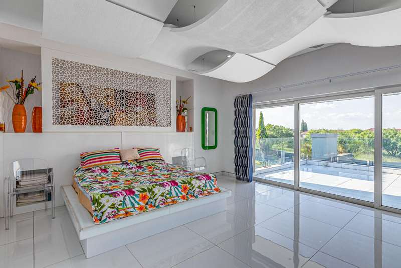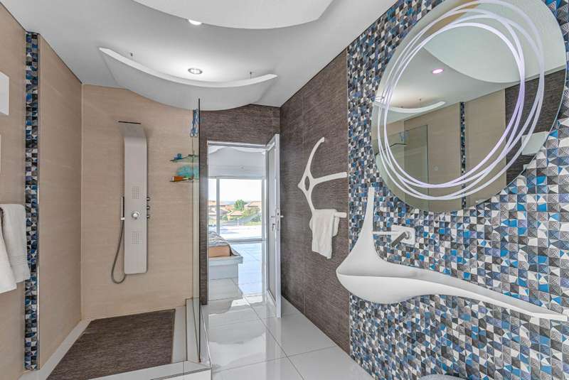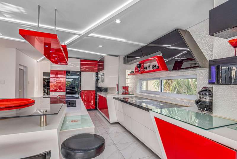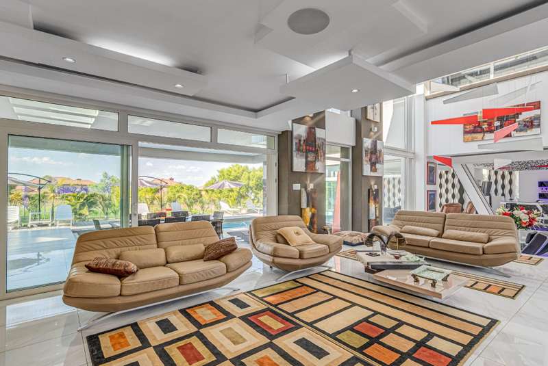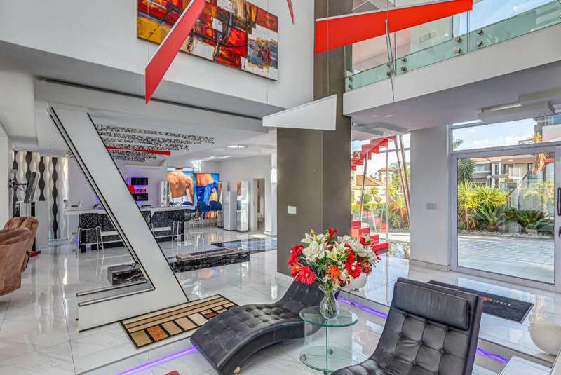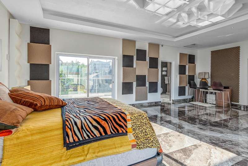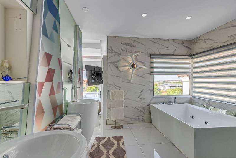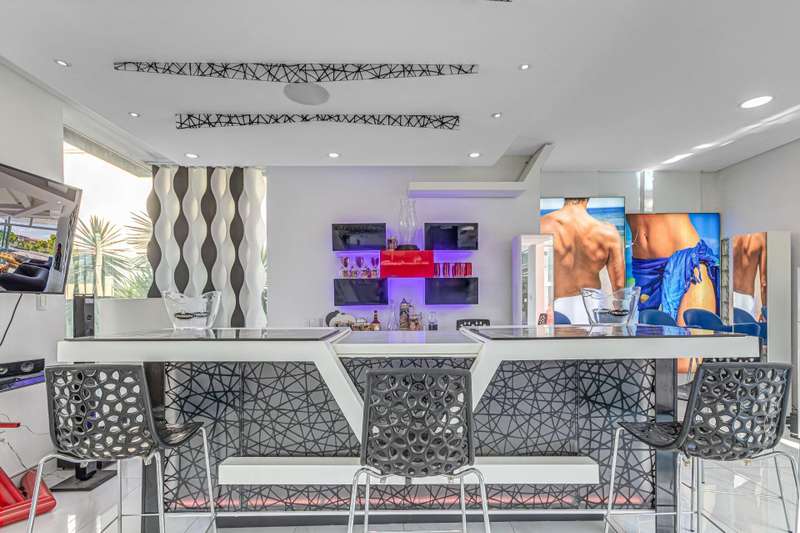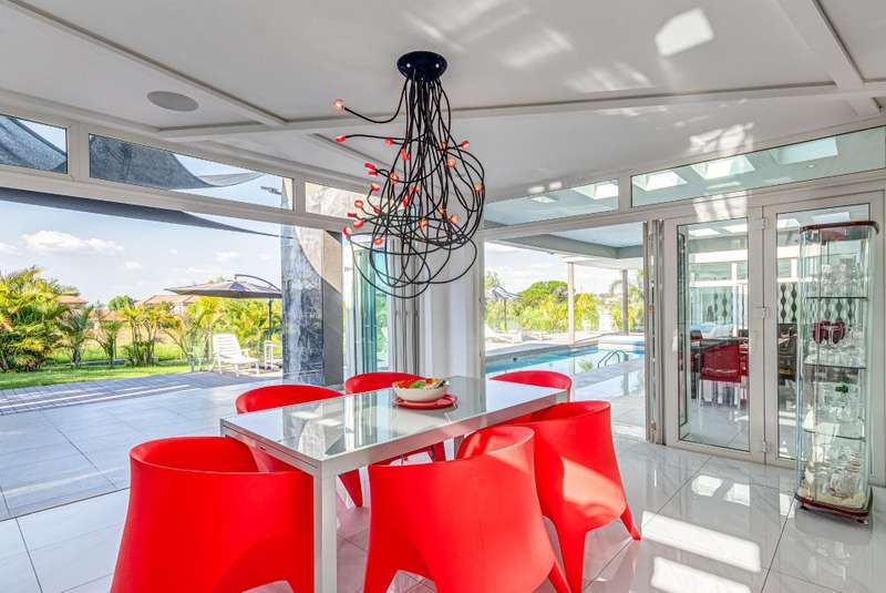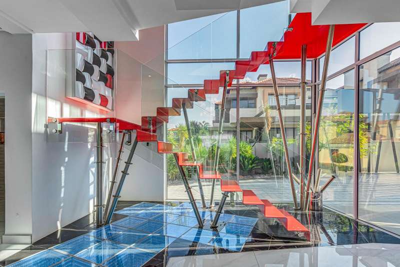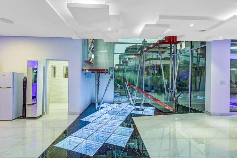 Modern Architectural Masterpiece in Blue Valley Golf & Country Estate Step into a world of contemporary elegance with this one-of-a-kind home, designed to impress with its bold use of colorful LED lighting, striking chandeliers, and seamless open-plan living. A grand double-volume entrance sets the tone, leading you into an expansive layout where natural light pours through glass walls, creating an airy and inviting atmosphere. The state-of-the-art kitchen is a showstopper, featuring a sleek flat electric stove, a pop-up extractor, and a remote-controlled shelf for ultimate convenience. A separate working kitchen with an oven, stove, and extractor ensures effortless meal preparation. Entertain in style with multiple lounges, a bar, and a closed patio equipped with a built-in braai, all flowing effortlessly to the deck, jacuzzi, and sparkling pool?Çöoffering the perfect indoor-outdoor experience against the scenic golf course backdrop. A striking red steel staircase leads to the upper level, where a cozy pajama lounge overlooks the home's dazzling chandeliers. Three luxurious en-suite bedrooms each open to private balconies, while the master suite is a true retreat, boasting a walk-in closet, a lavish double-sided bath, and a spacious balcony with breathtaking views. Many of the home?ÇÖs fixtures and design elements have been imported, adding to its distinctive character and high-end appeal. Completing this extraordinary home are a double garage, staff quarters, and a uniquely tiled driveway that enhances its exclusive charm. Experience unparalleled modern living in this exceptional Blue Valley residence!