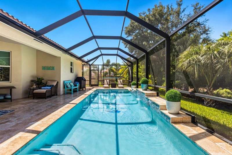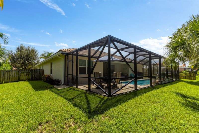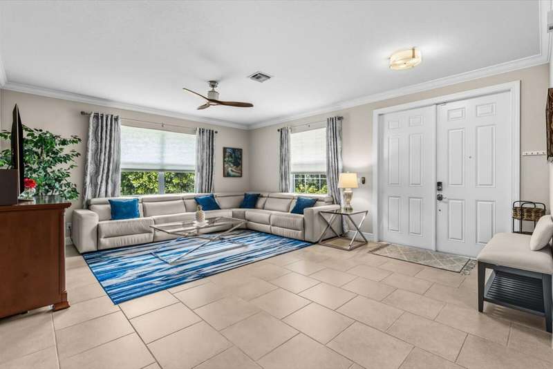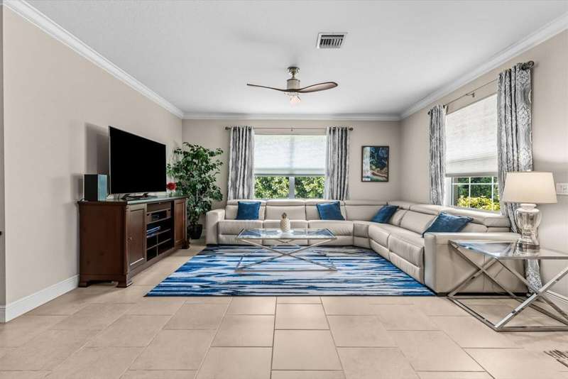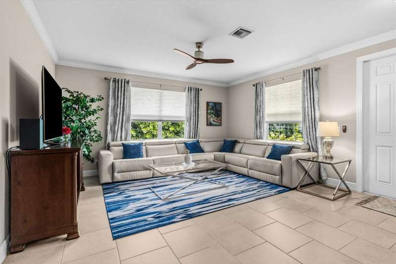 Discover your quiet haven in Bahia Sound, a gated community in Hobe Sound, Florida, that offers an easy, laid-back way of life. This peaceful community is situated on the banks of the intracoastal waterway.This beautiful four-bedroom, three-bathroom home, built in 2016 by DR Horton, is perfect for those seeking a tranquil lifestyle. The original owners have taken great pride in maintaining and improving every inch of the property. The home features a paver circle driveway and a sturdy concrete construction. As you enter through the double doors, youll be welcomed by a natural and easy flowing floor plan, highlighting one of the best triple split layouts. Inside, the walls and ceilings have a knockdown finish.