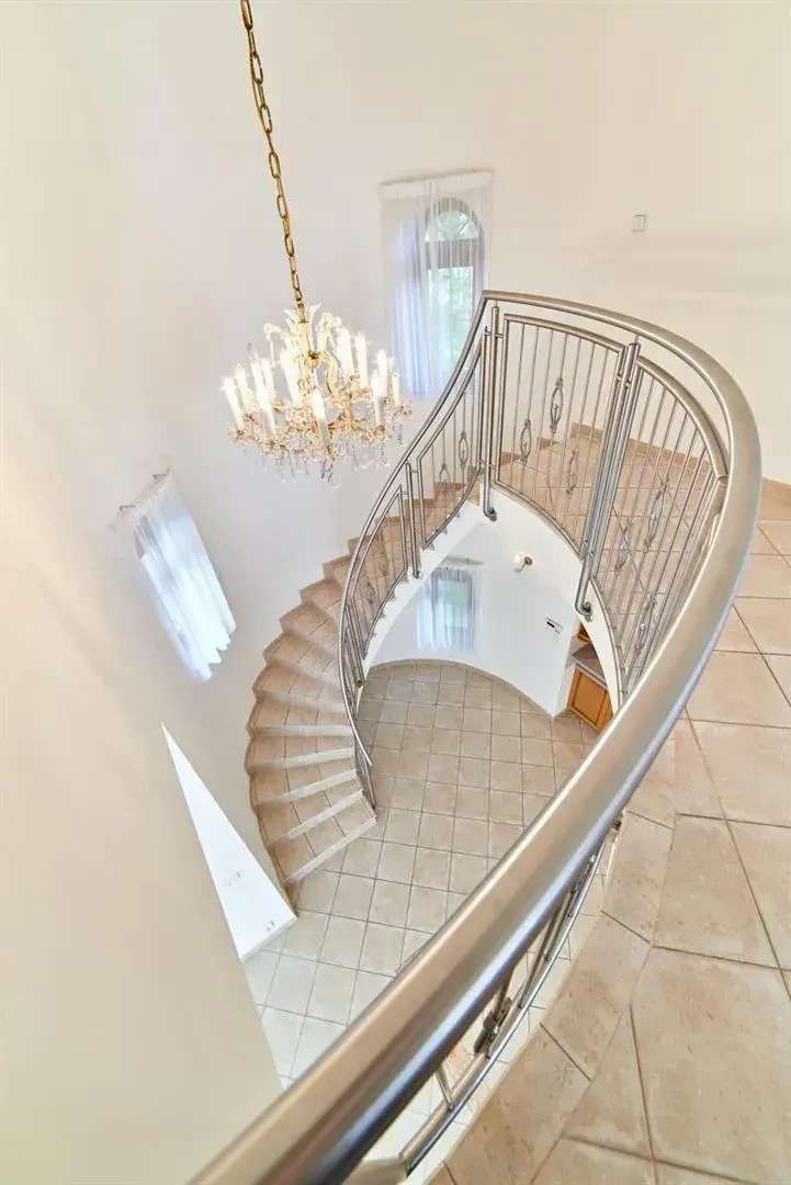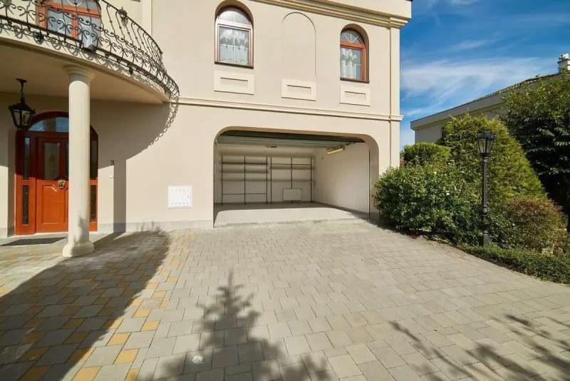 The garden is equipped with automatic irrigation. The building's energy performance certificate is being processed, thus it is listed under category G - very inefficient. The rent is 110,000 CZK/month, with additional charges for utilities, waste disposal, water and sewage amounting to 16,000 CZK/month, plus a fixed rate of 12,000 CZK/month for security, irrigation, and maintenance of the garden and pool.