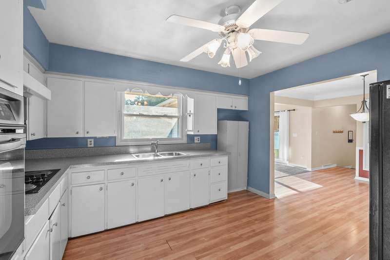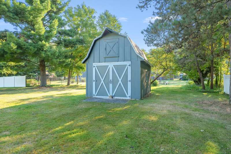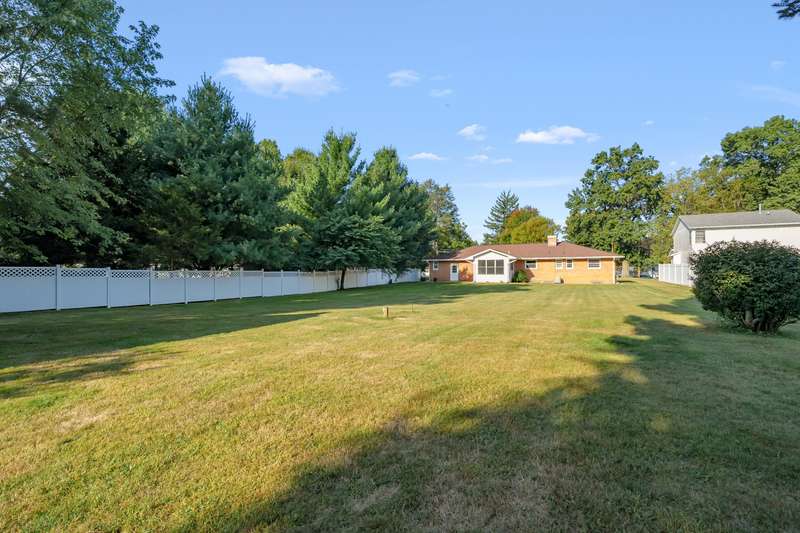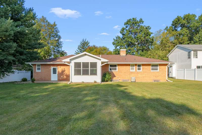 Welcome to this Charming all-brick ranch located on a quiet street and set on nearly a half-acre lot. The 3-bedroom, 2.5-bath home offers a primary bedroom with attached half bath, hardwood floors, a sunroom with Pella windows and Pella door that provides access to the oversized patio. A 2-story storage shed with loft, sits at the rear of the lot. Inside, the lower level features a spacious rec room with brand new carpet, plus an additional office space-perfect for work or hobbies. With its solid construction and timeless design, this home provides great potential to build equity while enjoying comfortable living in a peaceful setting.