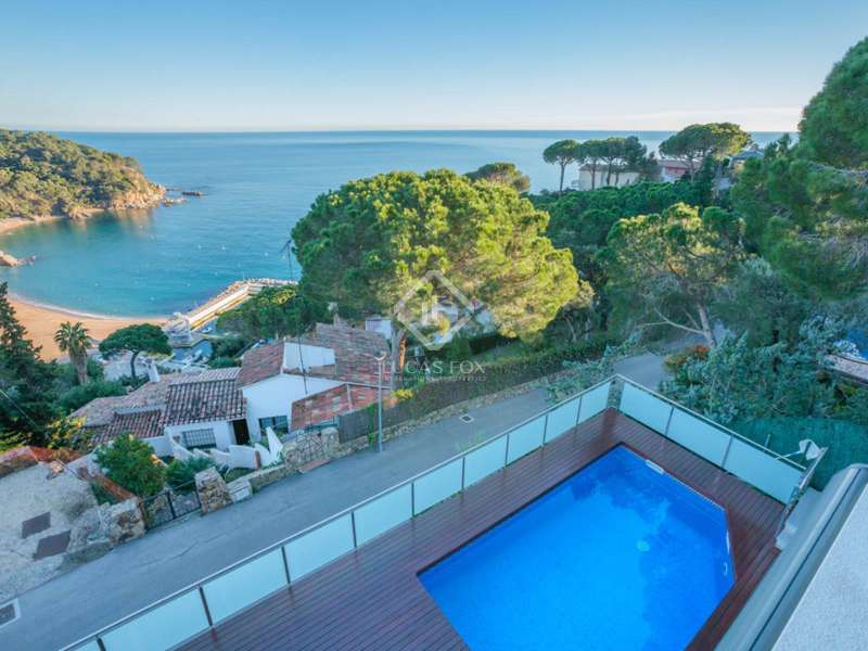 Wonderful contemporary-design villa for sale just 50 metres from the steps down to the idyllic Cala Canyelles beach on the Costa Brava. The house was built in 2009 with high quality materials and is found today in perfect condition. The plot has been well designed to include a garden and swimming pool with an immaculate decked terrace that provides breathtaking views of the beach. The house has 2 main floors. On the lower floor we find a bedroom and bathroom as well as the open-plan kitchen, living room and dining room that have access to the seafront terrace. This area is bright and airy. The remaining bedrooms are located on the top floor and also enjoy lovely sea views. There are 4 doubles, 2 of which have their own en-suite bathroom and the other 2 share a third complete bathroom. A 2-car garage and storage room are found on the lower ground floor. The property benefits from solar panels to heat the water and additional features of this house include a lift, heating, air conditioning in the bedrooms, exterior lighting and automatic blinds. A wonderful modern property with a truly unbeatable location and one of the most idyllic views on the Costa Brava.