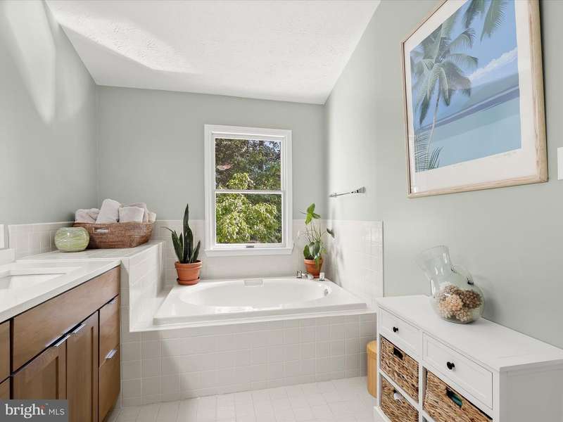 This beautifully updated brick and vinyl siding home offers the perfect blend of comfort, style, and convenience. Step inside to a welcoming foyer featuring gorgeous hardwood floors and crown molding that flow seamlessly into the living and dining areas. The spacious living room boasts elegant crown molding, rich hardwoods, and French doors that open to a freshly painted deck, ideal for entertaining or relaxing outdoors. The dining room provides a natural connection to the kitchen for effortless hosting. The updated kitchen is a true highlight, showcasing quartz countertops, a decorative backsplash, shaker-style cabinetry with soft-close drawers, a pantry, a dining area, and sleek appliances with electric cooking. Upstairs, the luxurious primary suite impresses with a vaulted ceiling, hardwood flooring, abundant natural light, a walk-in closet, and a spa-inspired en-suite bath with a double vanity, soaking tub, and walk-in shower. Two additional bedrooms and a stylish hall bath complete the upper-level retreat. The fully finished lower level expands the living space with luxury vinyl plank flooring, a full bath, and versatile areas perfect for an office, recreation room, or game space. Enjoy walk-out access to the backyard along with secure storage. Recent updates include the kitchen, flooring, primary bath, appliances, and deck painting, ensuring peace of mind for years to come. Conveniently located near Quarry Lake, shopping, dining, and entertainment, with easy access to I-695 and I-83 for travel to Baltimore, Washington, D.C., and beyond, this home offers both lifestyle and location in one.