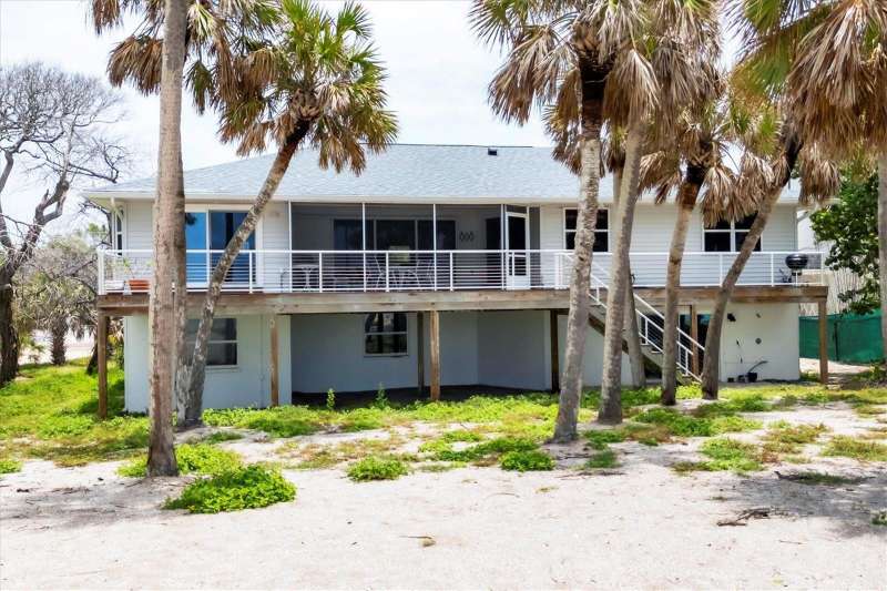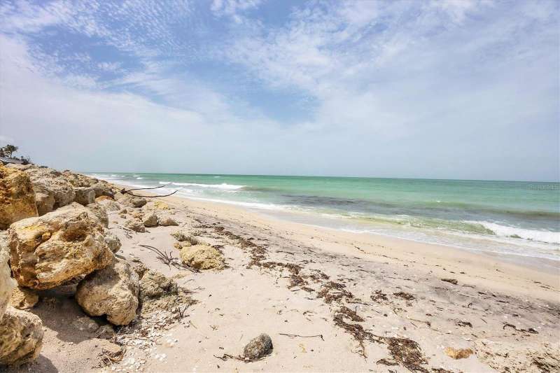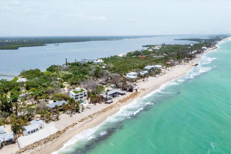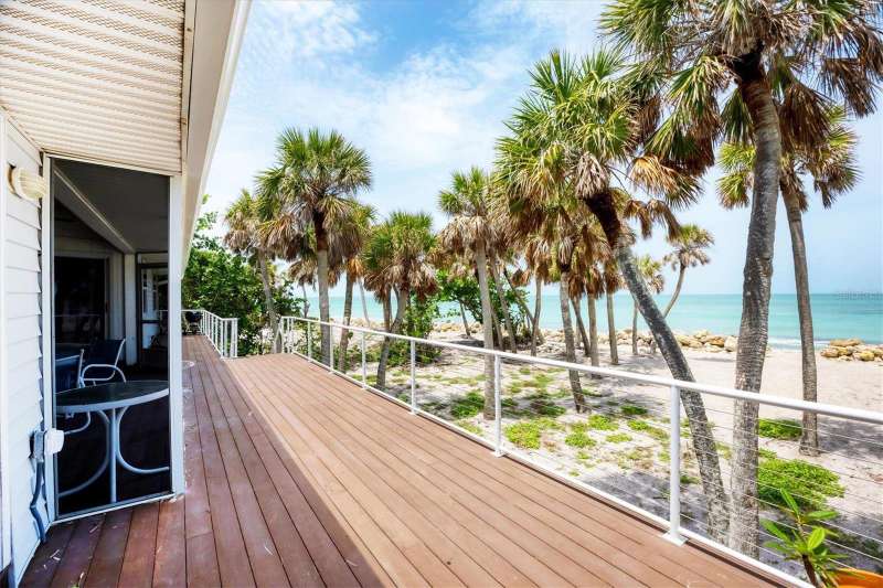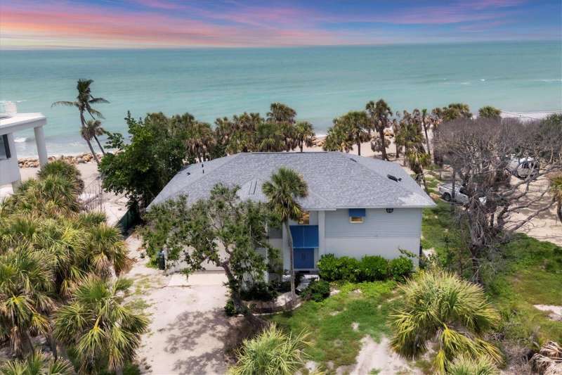 BEST priced Gulf front home! Welcome to your private beachfront escape on the quiet and unspoiled shores of Manasota Key. Tucked away on a lushly landscaped 0.64-acre lot with about 103 feet of direct Gulf frontage, this serene retreat offers relaxed, Old Florida charm. Step inside this mostly furnished coastal home and soak in sweeping views of the Gulf of Mexico—from nearly every room. Whether you're looking for a peaceful getaway or a full-time seaside sanctuary, this home blends comfort, style, and an unbeatable location right on the water. Notable highlights and recent upgrades include a private elevator for added convenience and luxury, some impact-resistant sliding glass doors & an impact-resistant garage door for enhanced safety, a newly installed riprap shoreline (2022) providing durable coastal protection, and a brand-new roof (2021) for peace of mind. With three bedrooms and two baths, the open layout feels airy and welcoming. You'll find plenty of storage with generous hallway closets, while the primary suite offers a true sense of retreat—with hardwood floors, two walk-in closets, impact-resistant sliders, and a spa-like bath featuring a soaking tub, walk-in shower, and dual vanities. Upstairs, the living and dining areas offer hardwood floors and panoramic Gulf views. Step out onto your screened lanai to enjoy ocean breezes and front-row seats to spectacular sunsets. Downstairs, there's a two-car garage, impact sliders, and a large open space—ideal for storage or finishing to suit your needs. Outside, tropical landscaping frames your private path to the beach. There’s even an outdoor shower and a sun deck off the lanai—perfect for laid-back afternoons after a swim in the Gulf. If you’ve been dreaming of quiet walks on the beach, gentle sea breezes, and the kind of coastal lifestyle that feels worlds away—this is your chance to customize & personalize this slice of paradise to make it your own. Discover the serenity, beauty, and timeless appeal of Manasota Key.