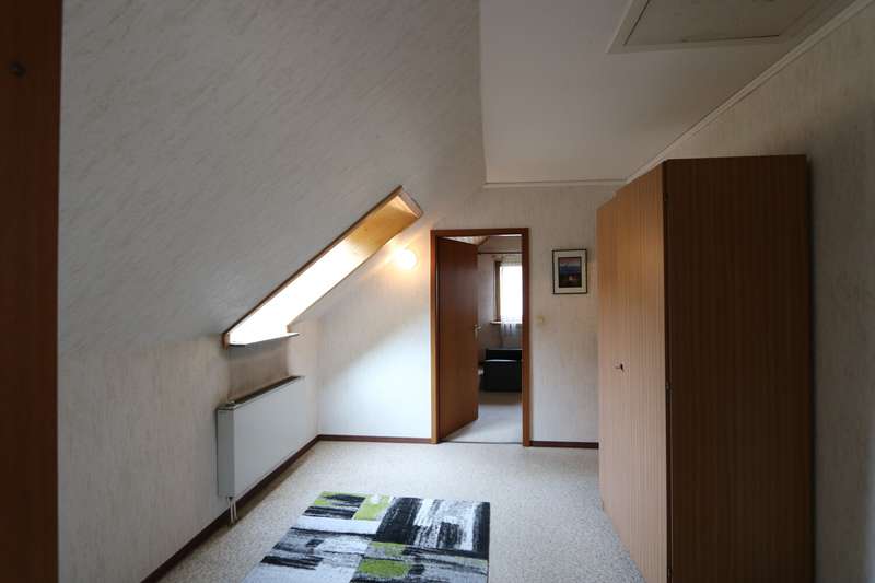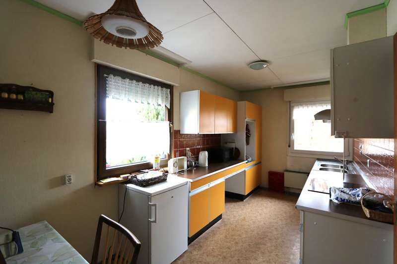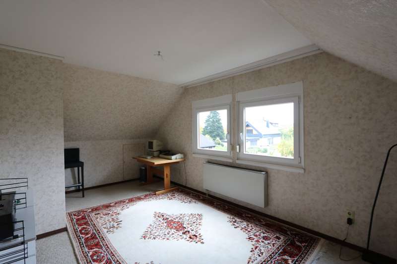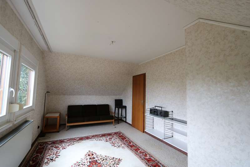 This well-kept detached house from 1974 impresses with its quiet and green residential area as well as its generous room layout, which offers a wide range of possible uses. On a plot of approx. 763 m², you can expect a living space of around 143 m² spread over two floors. The house is ideal for families looking for a quiet residential area. As soon as you enter the house, it becomes clear how much emphasis has been placed on a pleasant living atmosphere. The entrance area offers enough space for a checkroom and immediately conveys a feeling of space and brightness. From here, you enter the light-flooded living room, which offers a beautiful view of the garden through large windows and direct access to the terrace. This area forms the heart of the house - ideal for cozy family evenings, social gatherings with friends or simply relaxing. There are also two well-designed bedrooms on the first floor, which can be used flexibly - for example as a master bedroom, children's room or home office. A practical guest WC, the kitchen and the spacious bathroom round off the space on this level. The separate staircase is a particular highlight: it enables a clear separation of the two residential units, which makes the house particularly attractive for multi-generational living or as a combination of living and renting. The living space has been sensibly extended on the top floor. Here there is a cozy teenage room and another living room that can be used in a variety of ways - as a retreat for the children, as an office or as a studio, for example. The basement also offers numerous possible uses. In addition to ample storage space, there is a hobby room that is ideal for leisure activities, a workshop or a fitness area. The ingrown garden is easy to maintain and features a large lawn, shady trees and cozy retreats. Children can play carefree here while adults enjoy relaxing hours outdoors. The house also has a garage to keep your vehicle safe and protected from the weather. An additional parking space in front of the garage offers further convenience for you and your guests. This detached house combines solid construction quality, a well thought-out room layout and a quiet, family-friendly location. The property, which has always been owner-occupied, has been constantly maintained over the years, but energy modernization measures and extensive renovation work should be taken into account.