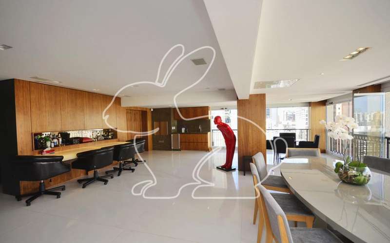 Projeto impecável, acabamentos de excelência em todos os ambientes, projeto de iluminação, sistema de som, home theater, ar condicionado, cortinas elétricas, piso , revestimentos e bancadas em mármore, living integrado a varanda Gourmert. Cozinha totalmente equipada com eletrodomésticos viking, adega, forno de pizza, máquina de gelo.