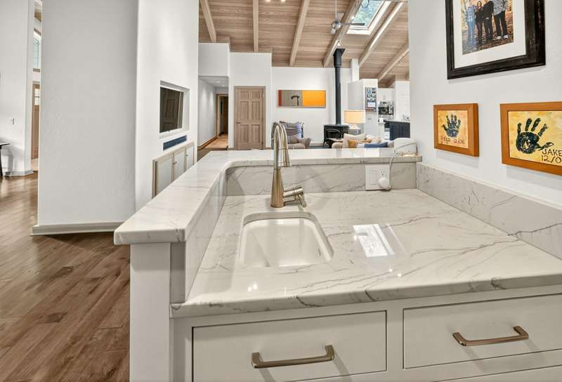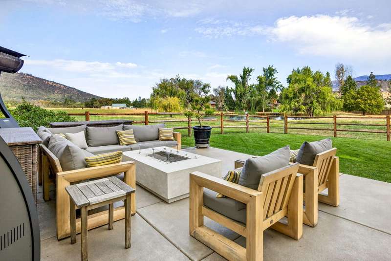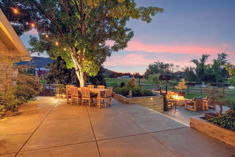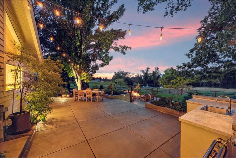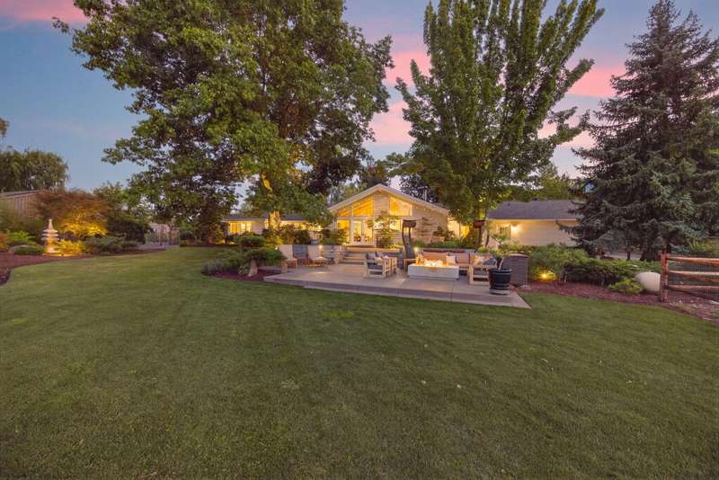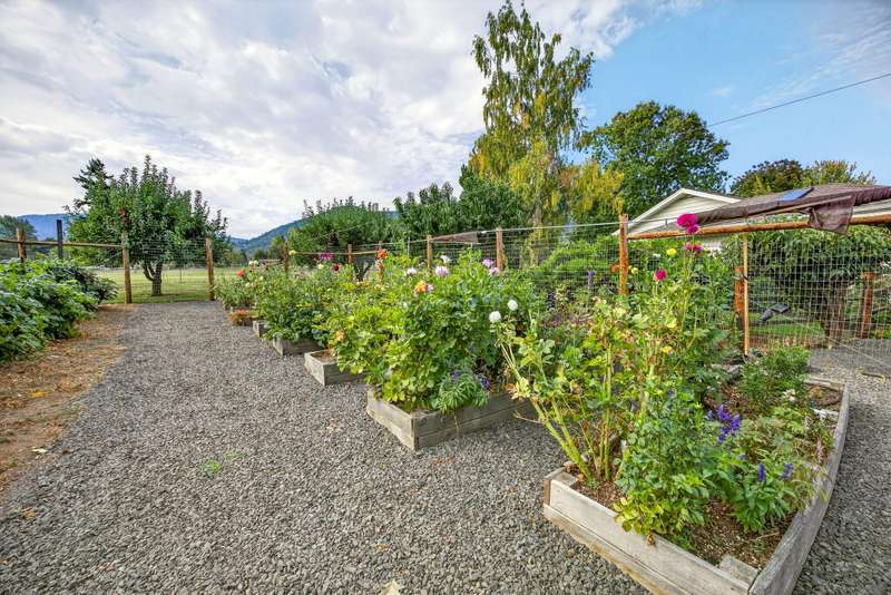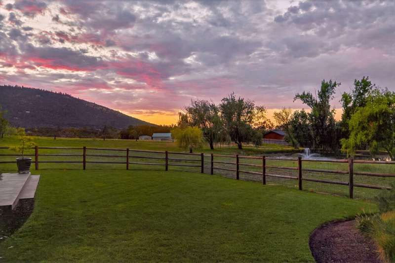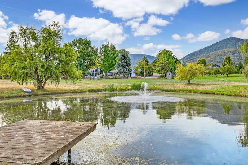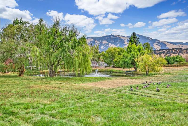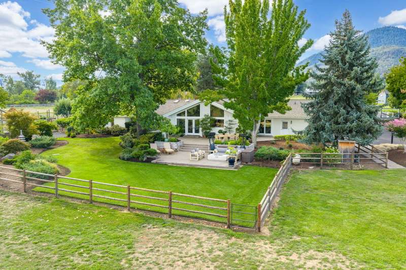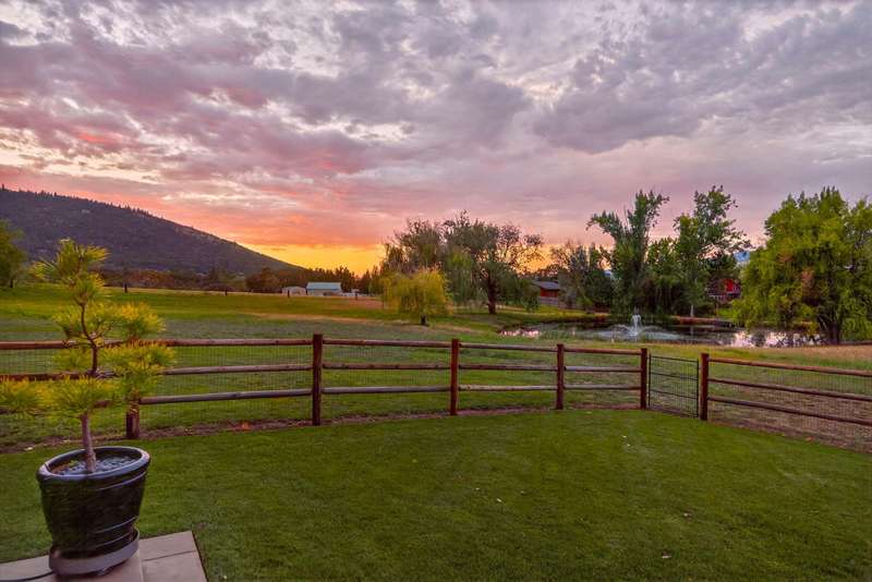 The pinnacle of country living on 7 acres just minutes from town. This ranch-style home blends modern updates w/ country charm + irrigation rights from TID & Neil Creek. Wood-lined vaulted ceilings, birch floors, & large windows frame pond & pasture views. Open concept kitchen w/ Quartzite counters, Wolf appliances, pot filler + island. Great Rm invites cozy gatherings by the woodstove. Designated office + secondary living area w/fireplace. Primary suite w/ granite, tile shower, & corner tub + direct access to the hot tub & patio. Two guest rooms share a hall bath + addtn'l en-suite guest quarters. Professionally designed Japanese garden theme will please the most discriminating buyer. Extensive entertainment areas include outdoor kitchen & specialized lighting illuminates the patios, pathways & exquisite plantings. Cross fenced pastures, orchard, pond, greenhouse, raised beds, & barn w/ separate access; perfect for toys/hobbies/animals. This property offers beauty, function, & space.