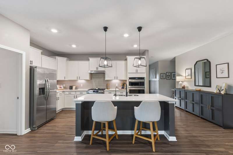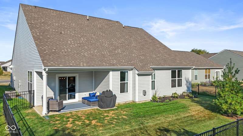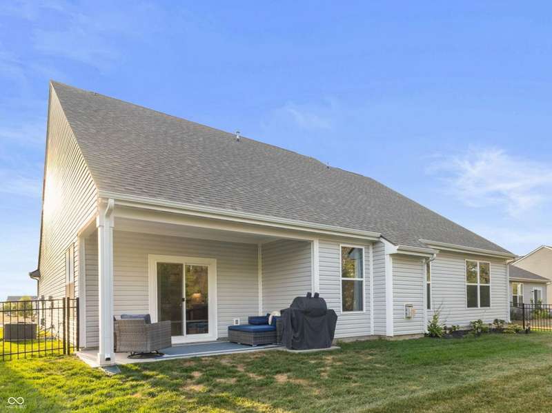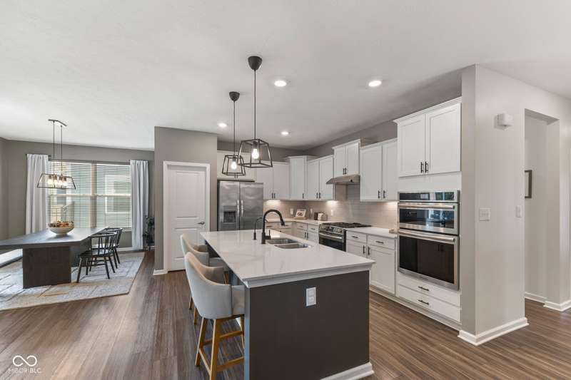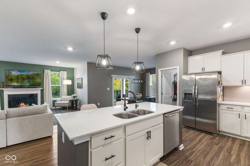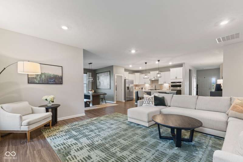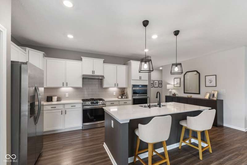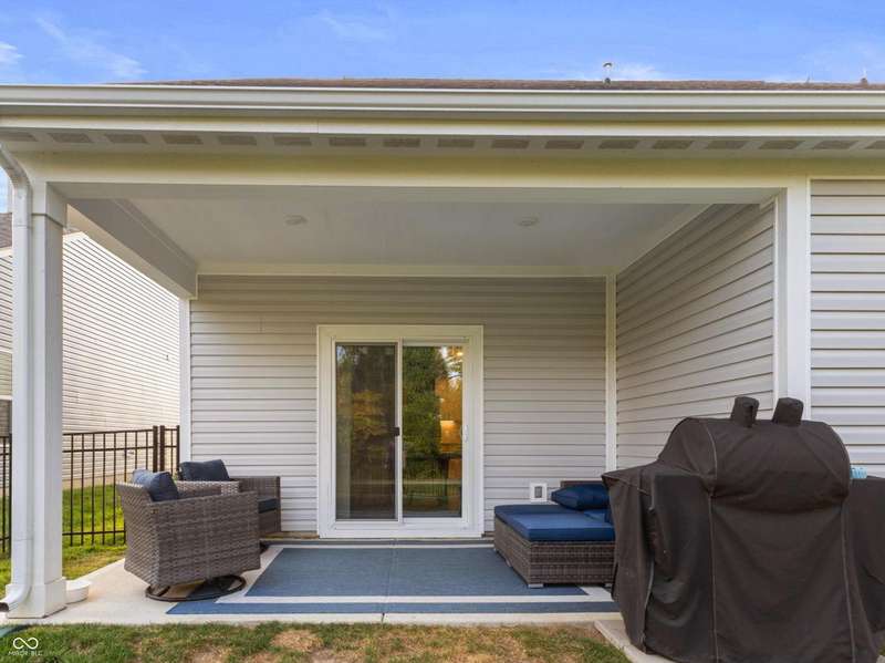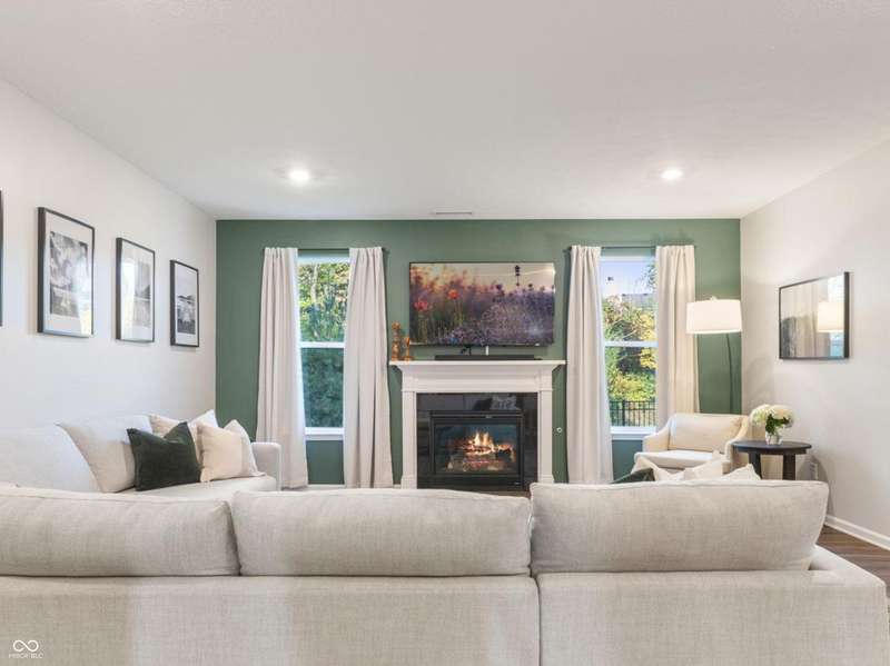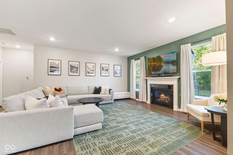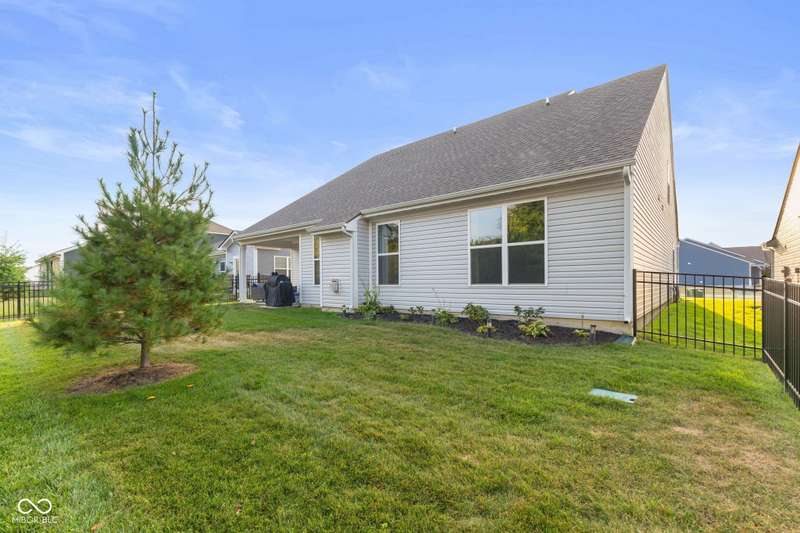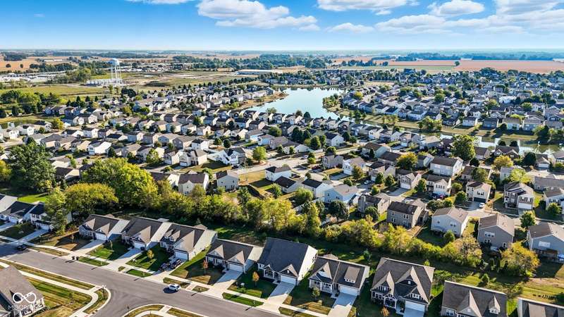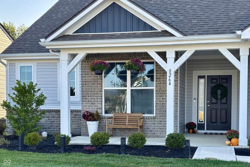 Welcome to this beautifully upgraded 4-bedroom, 3-bath home, perfectly positioned just across the street from Fishers in the highly sought-after Pendleton school district. Designed with both style and function in mind, this home offers a spacious open-concept layout, high-end finishes, and versatile living spaces throughout. At the heart of the home, the gourmet kitchen impresses with quartz countertops, a large center island, gas range with double ovens, soft-close cabinetry, tile backsplash, and luxury plank flooring, all flowing effortlessly into the oversized dining area and inviting great room with a cozy gas-log fireplace. The main level features a private owner's suite with a spa-like tiled walk-in shower and a generous walk-in closet. Moving through the main level, you'll find two additional bedrooms that share a full bath. Upstairs, you'll find a spacious loft, a fourth bedroom, and another full bath, ideal for guests, a home office, or a playroom. Enjoy outdoor living with a covered patio and fully fenced backyard, perfect for relaxing or entertaining. The 2-car garage includes an extended storage bump for added convenience. With upgraded flooring, plush carpet, and thoughtful touches throughout, this move-in-ready home checks all the boxes for modern living in a location you'll love. Don't miss your opportunity to call this one home!