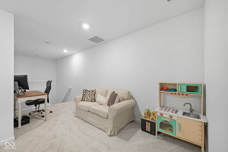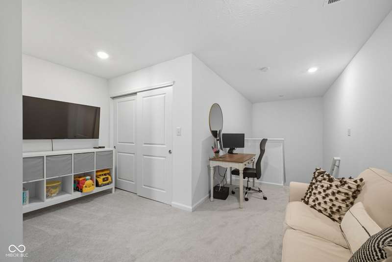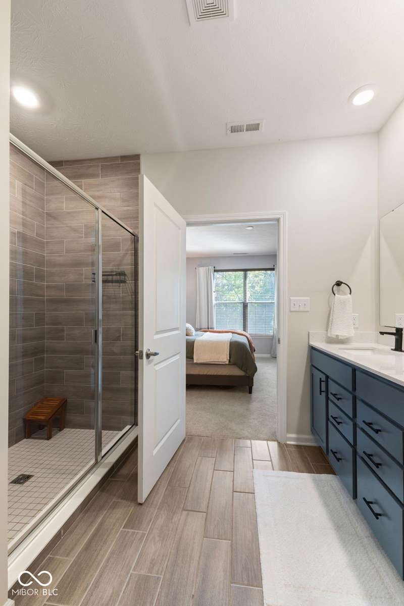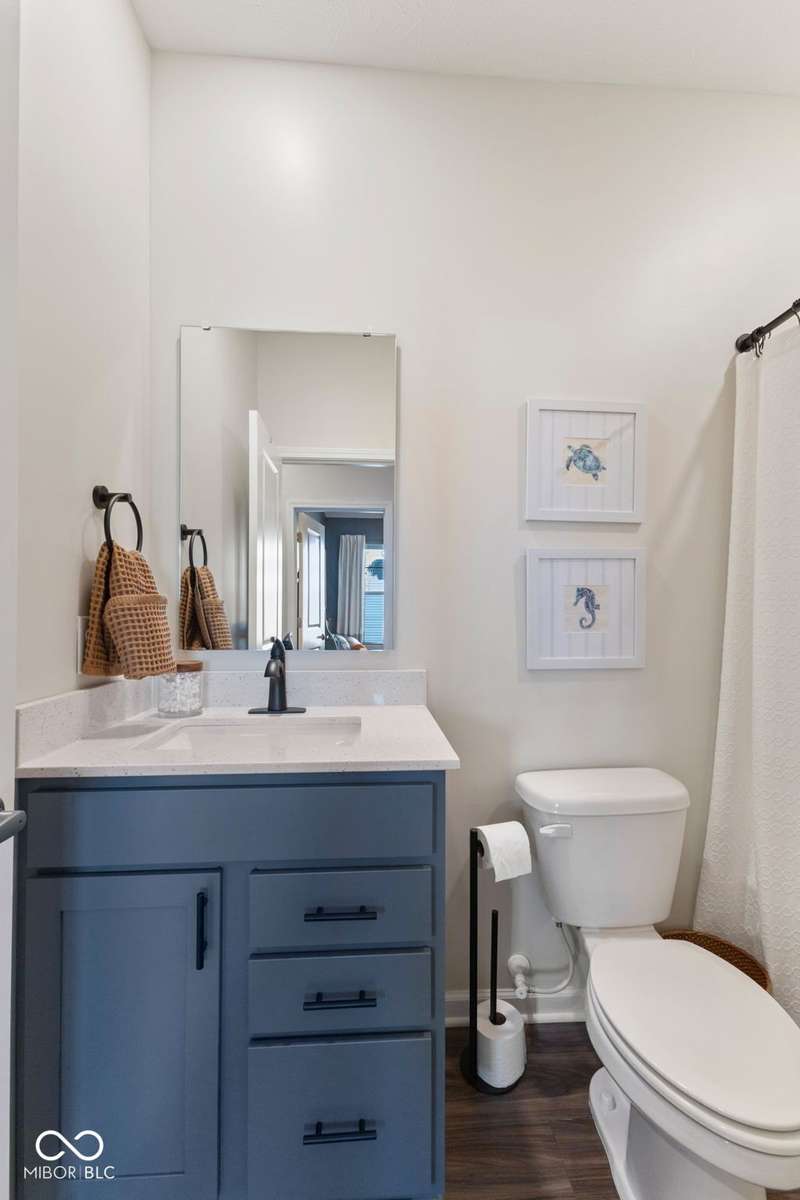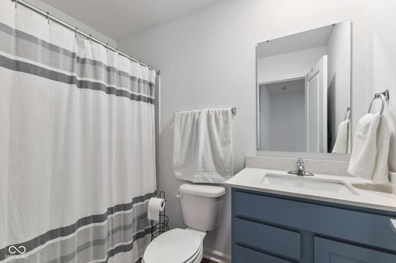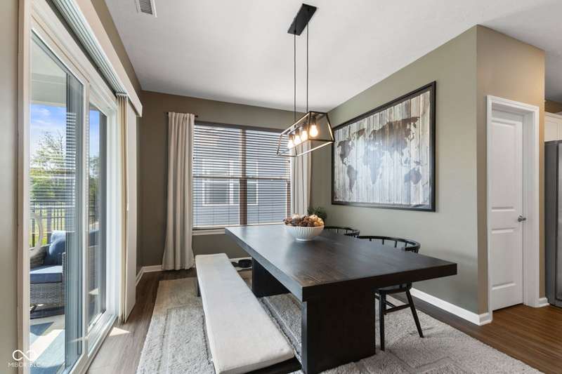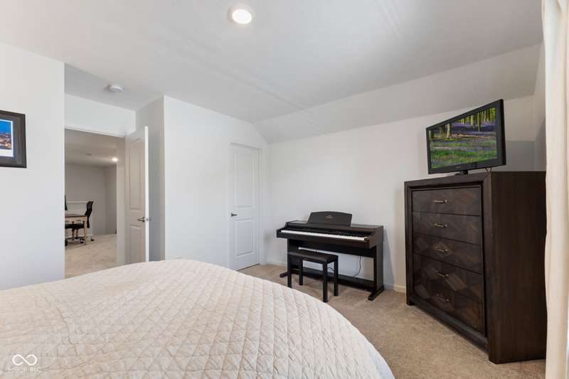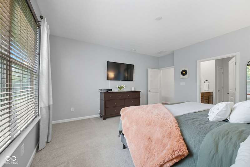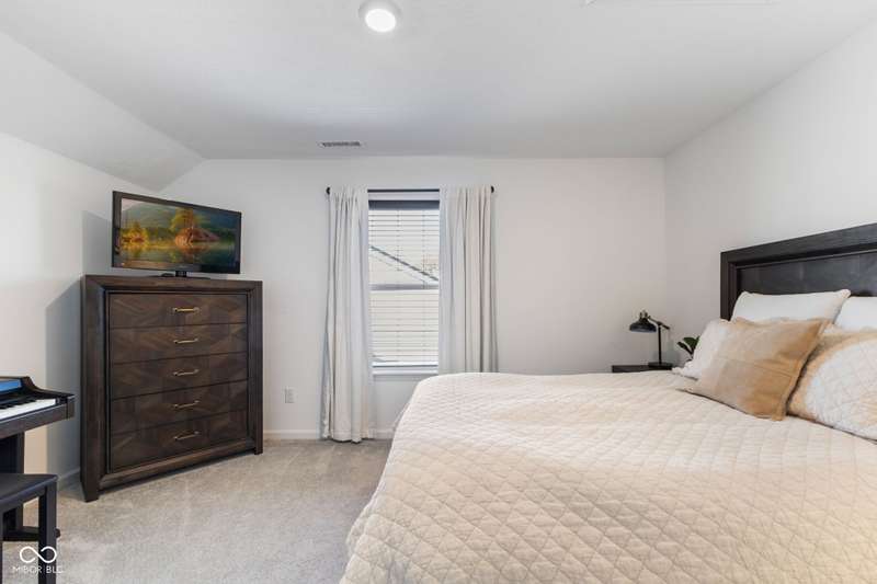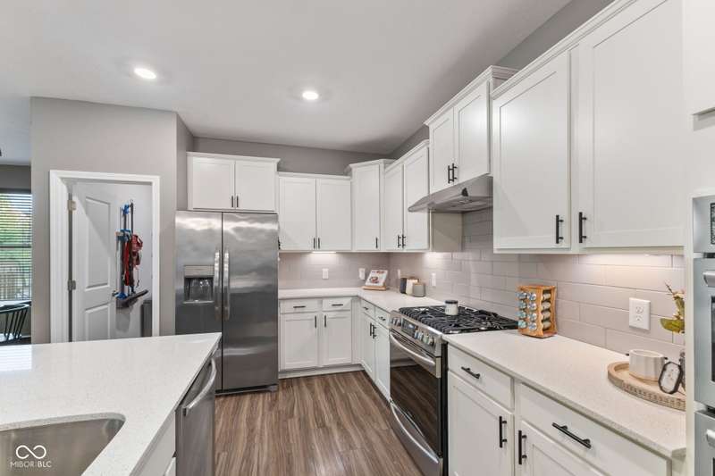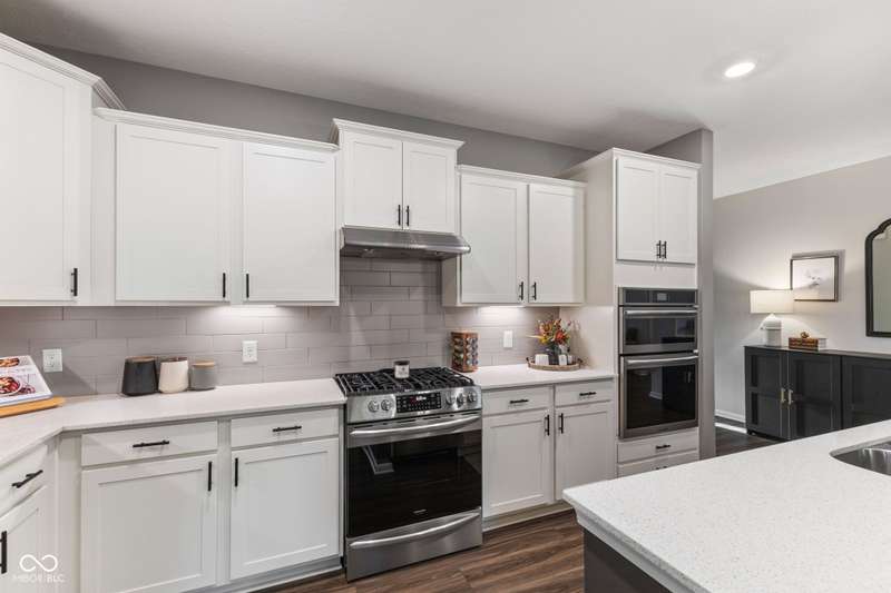 Welcome to this beautifully upgraded 4-bedroom, 3-bath home, perfectly positioned just across the street from Fishers in the highly sought-after Pendleton school district. Designed with both style and function in mind, this home offers a spacious open-concept layout, high-end finishes, and versatile living spaces throughout. At the heart of the home, the gourmet kitchen impresses with quartz countertops, a large center island, gas range with double ovens, soft-close cabinetry, tile backsplash, and luxury plank flooring, all flowing effortlessly into the oversized dining area and inviting great room with a cozy gas-log fireplace. The main level features a private owner's suite with a spa-like tiled walk-in shower and a generous walk-in closet. Moving through the main level, you'll find two additional bedrooms that share a full bath. Upstairs, you'll find a spacious loft, a fourth bedroom, and another full bath, ideal for guests, a home office, or a playroom. Enjoy outdoor living with a covered patio and fully fenced backyard, perfect for relaxing or entertaining. The 2-car garage includes an extended storage bump for added convenience. With upgraded flooring, plush carpet, and thoughtful touches throughout, this move-in-ready home checks all the boxes for modern living in a location you'll love. Don't miss your opportunity to call this one home!
