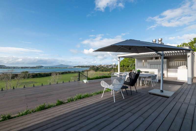 Positioned along one of Remuera’s most prestigious streets, this residence by the late Claude Megson—a visionary architect who expressed emotion through space—is not merely a home but a living work of art where light, views, form and life move in harmony. Set on an expansive 1,102 sqm site, the property captures 270-degree panoramic views over Bloodworth Park, the harbour, and the city skyline. Throughout the day, sunlight transforms the interiors into a dynamic canvas of shifting light and shadow. Inside, sculptural ceilings, rich textures, and abundant natural light define the interiors. The Gaggenau-equipped kitchen connects seamlessly with three elegant living areas that flow to an elevated viewing deck with louvred canopies, outdoor BBQ, fireplace, and a relaxing lounge retreat. Beyond, the beautifully landscaped grounds create a private sanctuary featuring a professional 18-metre putting green, perfect for golf enthusiasts. Accommodation includes four bedrooms, a study, three living rooms, and four bathrooms. The master suite features dual dressing rooms and a luxurious ensuite. Contemporary comforts include ducted heating, double-glazed windows with insect screens, secure parking facilities with a purpose-built carport, double garage, and generous off-street parking—all harmoniously integrated into Megson’s timeless architectural vision. Situated within the coveted Double Grammar Zone (AGS and EGGS) and close to leading private schools such as King’s School, St Kentigern’s, and ACG, the residence offers both educational excellence and architectural inspiration. With Remuera Village, Newmarket, Parnell, and the waterfront just minutes away, this home transcends conventional living—a rare composition of light, design, and the quiet poetry of everyday life.
