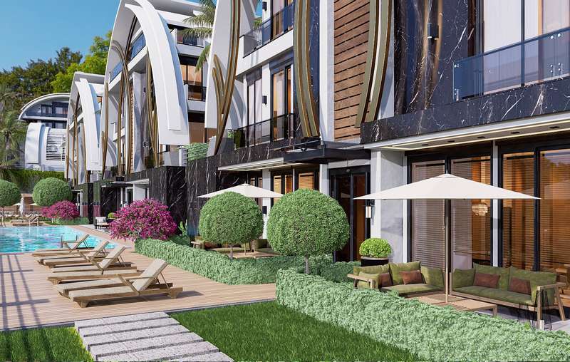 The health center is 3.5 km, the sea is 4 km, the Mahmutlar center is 8 km, and Gazipasa-Alanya Airport is 20 km to flats in Alanya for sale.