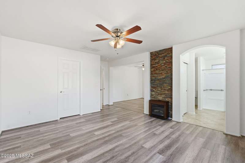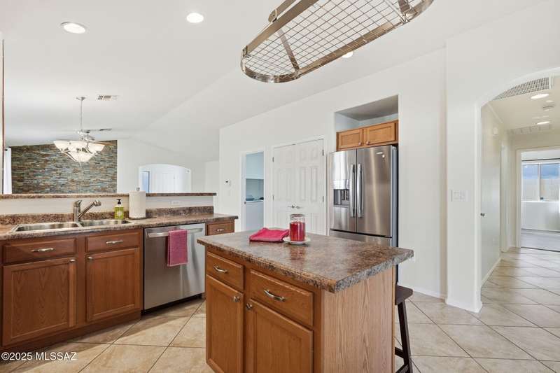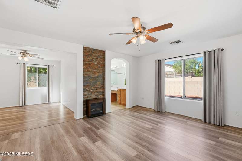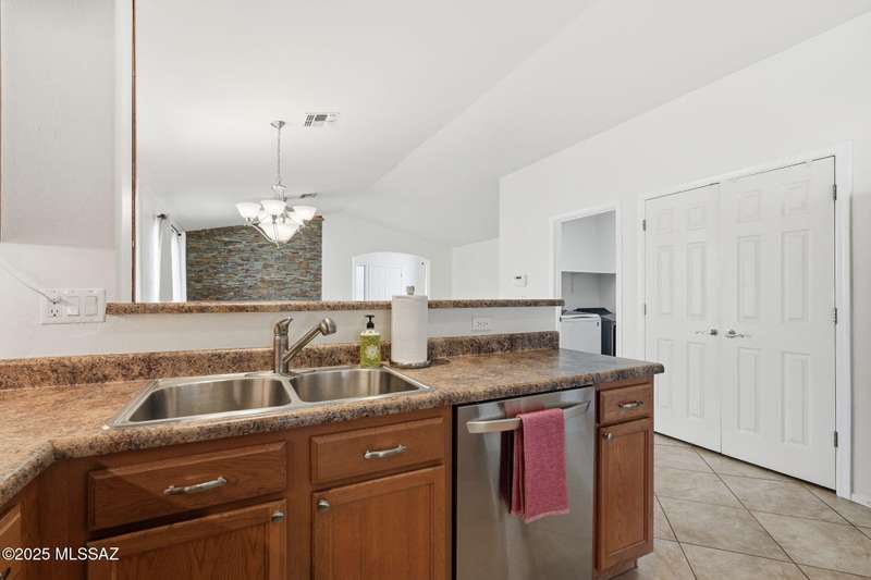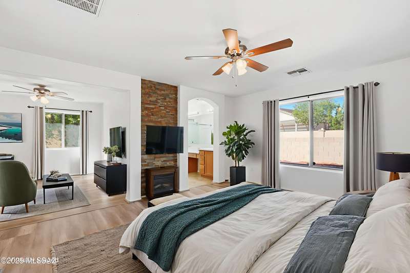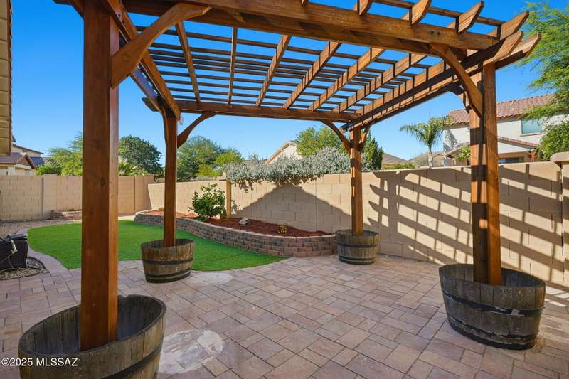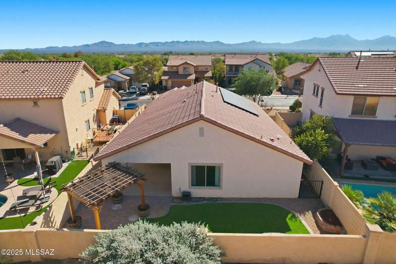 This beautifully upgraded 3-bed, 3-bath home in a gated community within Rancho Sahuarita offers resort-style living with a water park, lake, and more. Enjoy an open-concept layout with a family room off the kitchen, bonus room off the master, and a newly remodeled walk-in shower. The front bedroom and bath are privately separated, and the home features fresh paint, stacked rock accent walls, a hanging pot rack, new dishwasher, new water heater, and a paid-off solar system. Outdoor highlights include ramped access, extended covered patios front and back, turf yard, grapefruit tree, raised flower beds with drip system, and privacy from a bordering common area. Located near shopping and freeway access, this home blends comfort, style, and convenience.