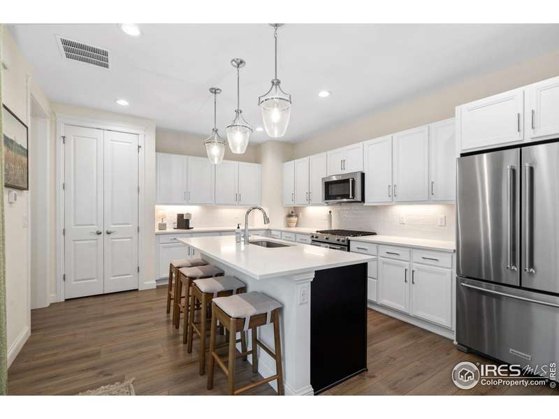 Absolutely beautiful 3 bedroom, 3 bath attached home in Erie. This wonderfully appointed residence features a living room with a gas fireplace that seamlessly opens to a gourmet-style kitchen, ideal for entertaining. Upstairs, you will find three well-sized bedrooms and two bathrooms with luxurious finishes. The basement offers great potential for expansion or additional storage. Enjoy incredible views overlooking the neighborhood pool and clubhouse, as well as stunning vistas of the Colorado mountains. This is truly a special home! The clubhouse is fantastic, with a pool, hot-tub, workout room, business center, and more!