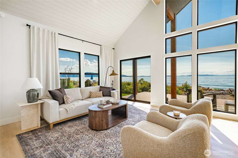 Absolutely spectacular west-facing oceanfront property with panoramic views of the San Juan Islands, Strait of Georgia & breathtaking sunsets! This fully renovated 3 bed, 2.5 bath home features 2,322 sqft of luxury, including 700 sqft of new living space, all-new windows, doors, siding, custom cabinetry, quartz countertops & high-end finishes throughout. Detached 550 sqft 1 bed, 1 bath ADU with private entrance has Airbnb history. Enjoy clubhouse, pool, golf, tennis, marina & world-class fishing/crabbing just steps away!