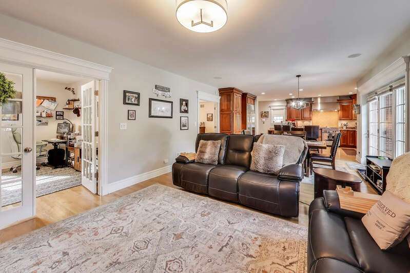 Prime Oak Park location! This impressive Tudor sits on an oversized 53x173 lot with a side drive and 3-car garage. Offering 5 bedrooms, 5.1 baths, and over 5,100 sq. ft. of living space, the home blends timeless character with modern updates. Step into a grand entry with a stunning, height-adjustable chandelier. The formal living room with fireplace flows seamlessly into the dining room. A chef's kitchen features a Wolf range, Sub-Zero refrigerator, Bosch microwave, and large island-perfect for cooking and conversation. Sun-filled family room opens to a spacious (590 sq. ft.)Trek deck (50-year warranty) with a custom 3-season room in progress (permits complete). Second floor includes 4 bedrooms-two ensuite (including the primary with walk-in closet)-plus a second laundry. The bright third level offers a new bath, walk-in closet/dressing table, and flexible living space, ideal for guests or extended family. Lower level highlights recreational/workout room, a "Costco closet," additional laundry, great storage, and full bath. Beautifully landscaped grounds feature uplighting, a firepit, and expansive yard for entertaining. Updates include solar panels, 2 new HVAC systems (last 6 yrs), hot water tank, new Bosch microwave, mechanical skylight blinds, all new windows, California Closets, and more. A rare Oak Park offering with space, style, and thoughtful improvements throughout!