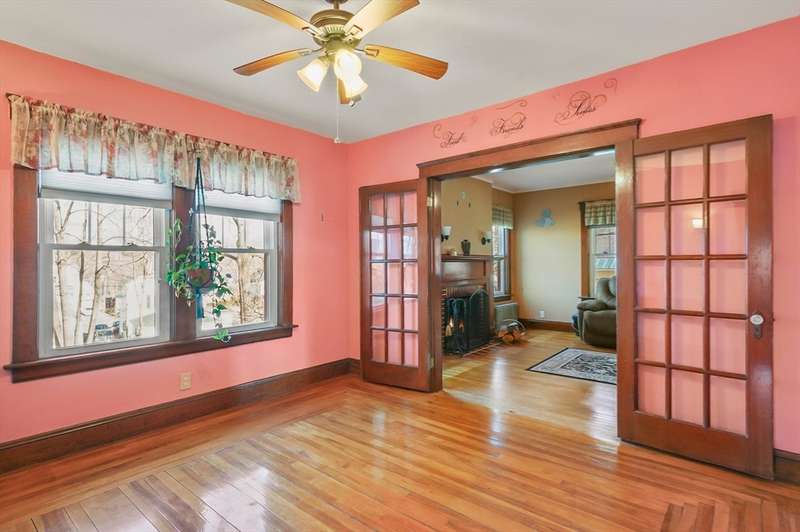 Welcome home to this charming 4 bedroom, 2 bath South Gardner gem! Enter through the enclosed porch into a foyer showcasing stunning original wood molding. The spacious living room with a cozy wood-burning fireplace and the dining room feature gleaming hardwoods, while the bright family room offers wall-to-wall carpeting and two bay windows. A large kitchen with stainless appliances, a full bath, and a laundry room complete the main level. The gorgeous wood staircase leads to a striking antique hallway and four generously sized bedrooms, all with rich hardwood floors. A storage closet and a second full bath add functionality. Outside, enjoy a large backyard, paved driveway, storage shed and two-car garage. Nestled on a tranquil side road yet close to highways, shopping, and entertainment, this home blends charm and convenience! Sellers working on probate, buyers could not wait any longer. Their loss your gain!