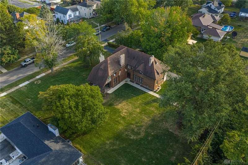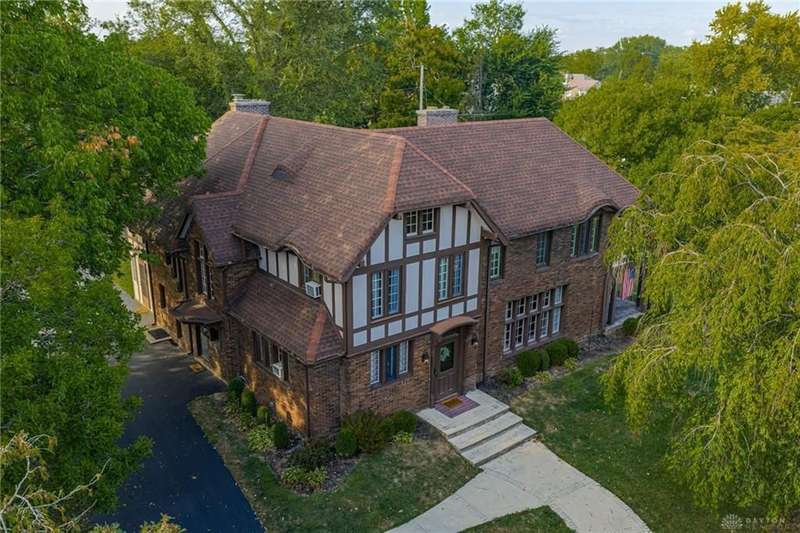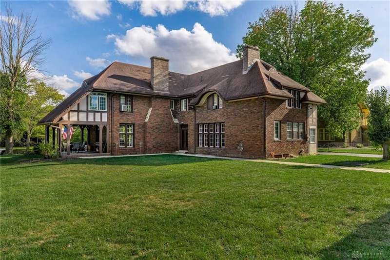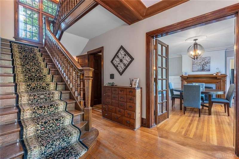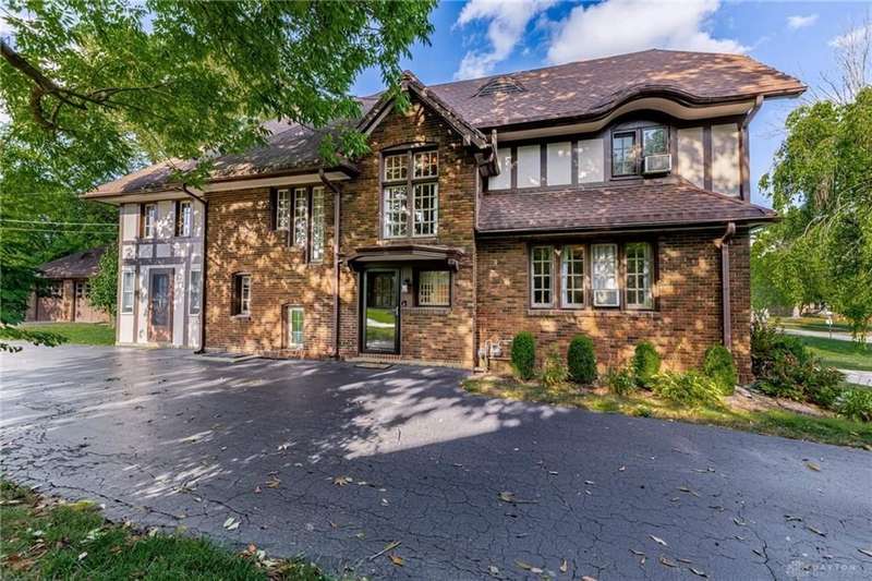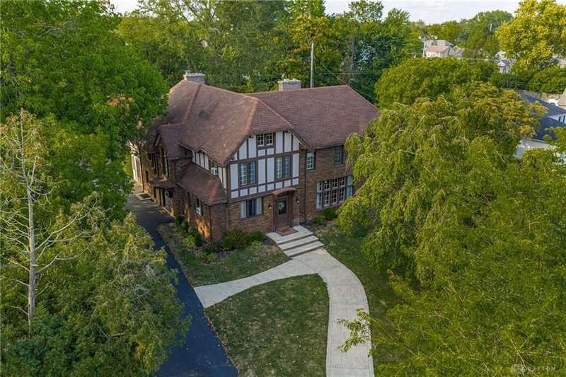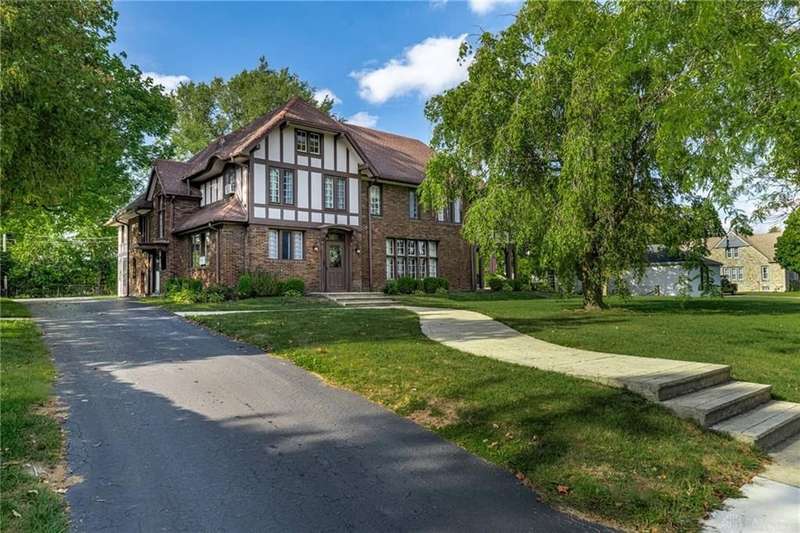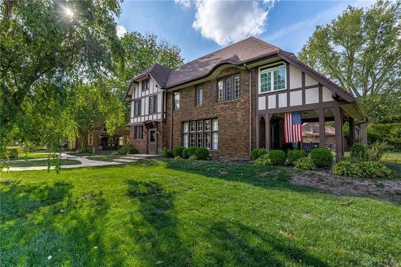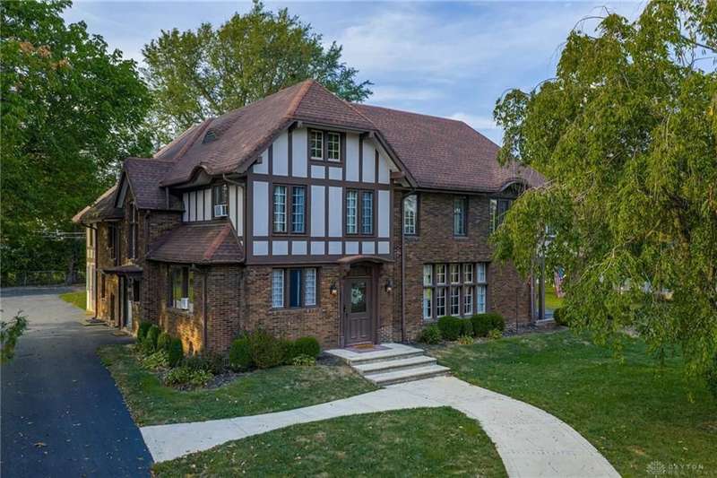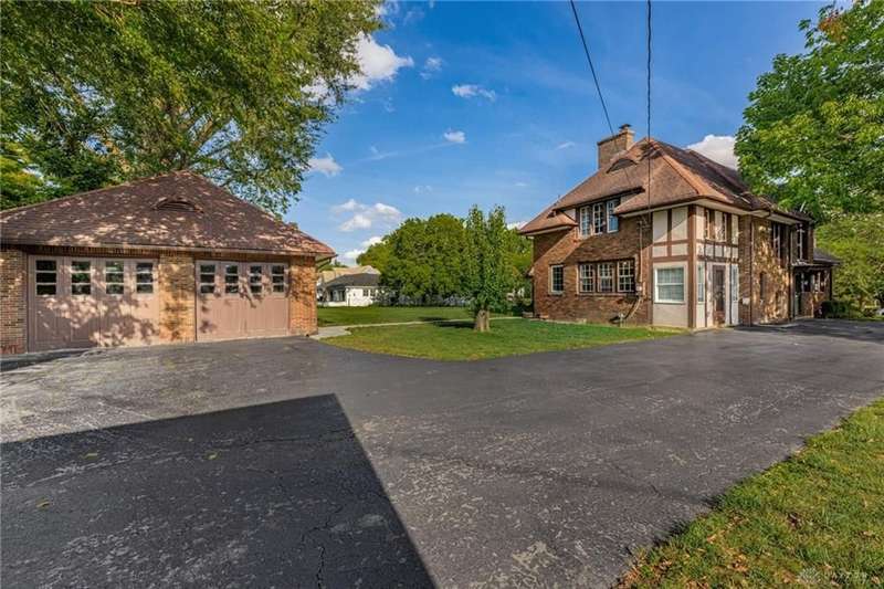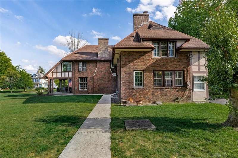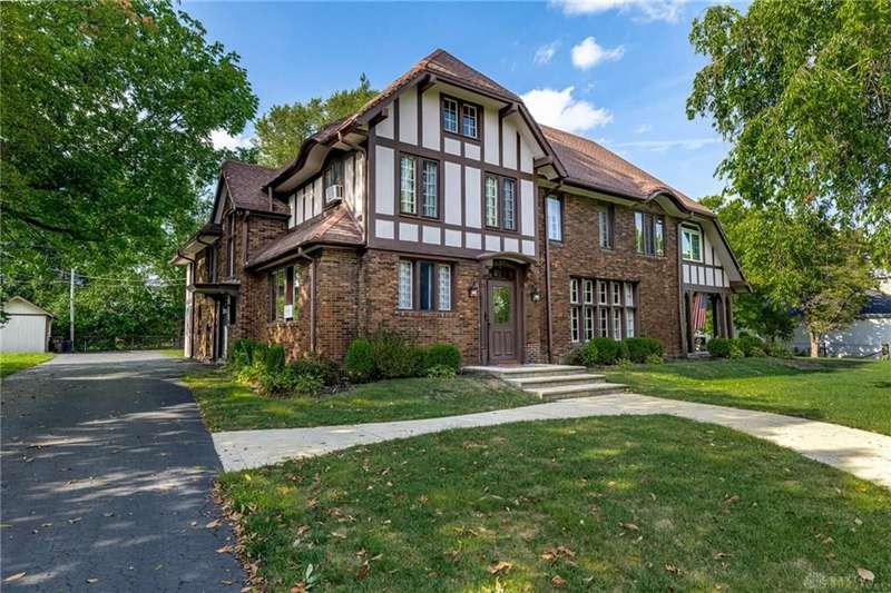 Step back in time with this beautifully restored 1900 English Tudor, a wonderful landmark in Washington Court House. Offering more than 3500 square feet of living space on a large double lot, this home pairs historic craftsmanship with thoughtful updates for today’s lifestyle.From the moment you arrive, details like the custom-stamped concrete walkway, mature landscaping, & impressive original 42” hardwood door set the tone. Inside, character abounds with four fireplaces, hand-carved mantels, seven sets of glass-paned French doors and original sconce lighting. The rich quarter-turned tiger oak floors & original bathroom tile have been carefully refinished and restored.The home offers a rare blend of grandeur & comfort with nine-foot ceilings, decorative medallions, and custom wood built-ins. The dining room showcases early 1900s style tile above the fireplace and board-and-batten wainscoting, while the powder room features a custom vanity with vessel sink. The kitchen has been updated with new flooring, fixtures, appliances and plumbing, striking a balance between modern function and historic charm.An elegant main staircase winds its way up to the second floor where you'll find the spacious sleeping quarters. The owner's retreat is designed to impress, with an entryway, private bath, fireplace, large walk-in closet and an attached nursery/dressing room. Two hallways lead to 3 additional bedrooms, each with its own large closet, a hall bath, plenty of storage and a second stairway.Outdoor spaces are open and inviting, with a large courtyard, covered dining area/side porch, and a long driveway leading to the detached 2-car garage and shed. A full attic and large basement provide excellent storage or the potential for additional living space.Lovingly maintained and recently refurbished, this one-of-a-kind home offers the opportunity to own a piece of local history — just minutes from downtown, schools, and parks.