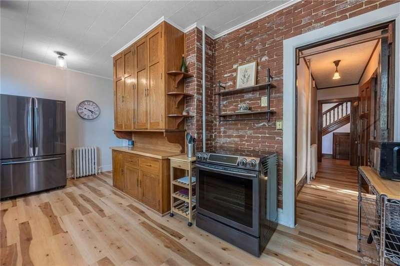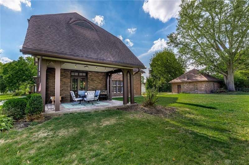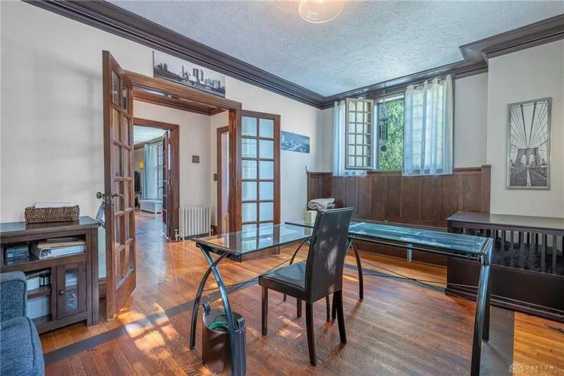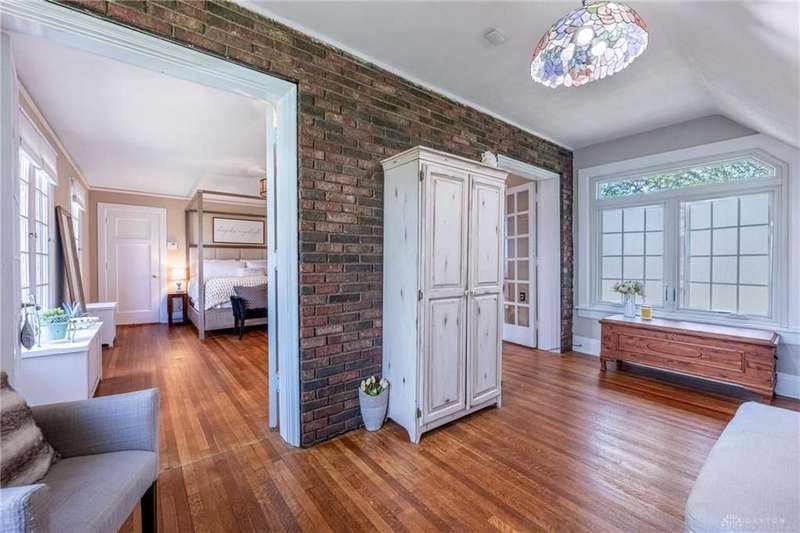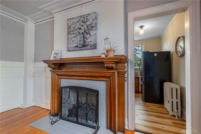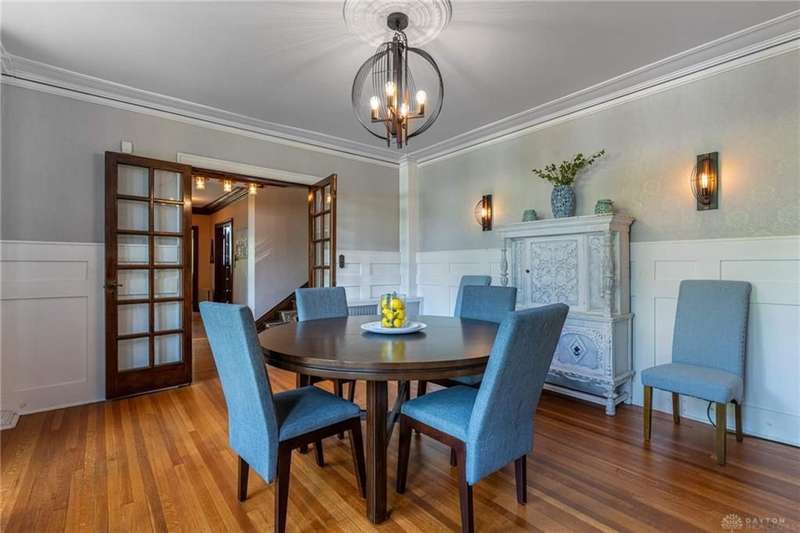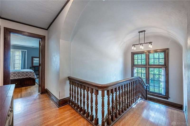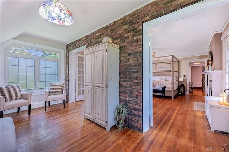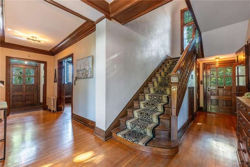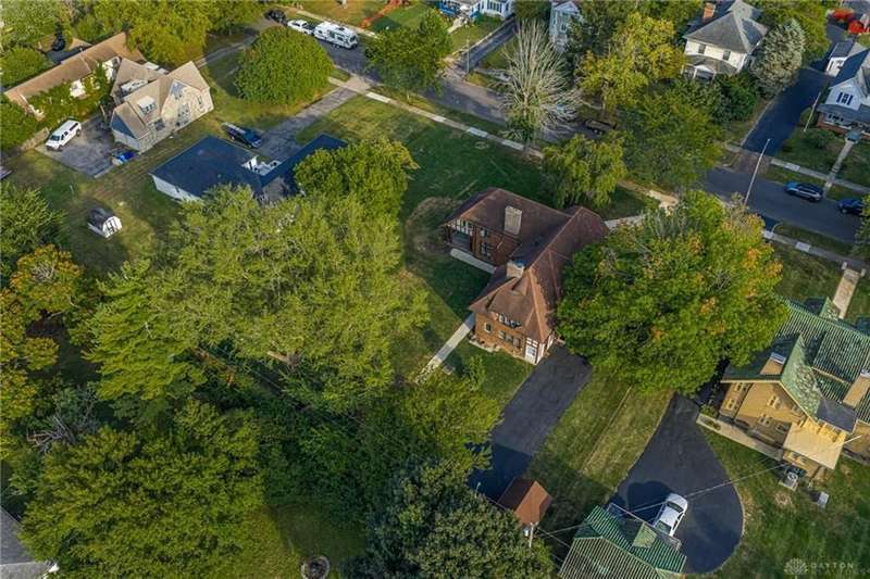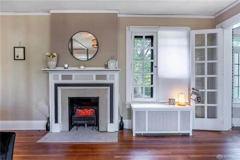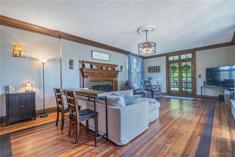 Step back in time with this beautifully restored 1900 English Tudor, a wonderful landmark in Washington Court House. Offering more than 3500 square feet of living space on a large double lot, this home pairs historic craftsmanship with thoughtful updates for today’s lifestyle.From the moment you arrive, details like the custom-stamped concrete walkway, mature landscaping, & impressive original 42” hardwood door set the tone. Inside, character abounds with four fireplaces, hand-carved mantels, seven sets of glass-paned French doors and original sconce lighting. The rich quarter-turned tiger oak floors & original bathroom tile have been carefully refinished and restored.The home offers a rare blend of grandeur & comfort with nine-foot ceilings, decorative medallions, and custom wood built-ins. The dining room showcases early 1900s style tile above the fireplace and board-and-batten wainscoting, while the powder room features a custom vanity with vessel sink. The kitchen has been updated with new flooring, fixtures, appliances and plumbing, striking a balance between modern function and historic charm.An elegant main staircase winds its way up to the second floor where you'll find the spacious sleeping quarters. The owner's retreat is designed to impress, with an entryway, private bath, fireplace, large walk-in closet and an attached nursery/dressing room. Two hallways lead to 3 additional bedrooms, each with its own large closet, a hall bath, plenty of storage and a second stairway.Outdoor spaces are open and inviting, with a large courtyard, covered dining area/side porch, and a long driveway leading to the detached 2-car garage and shed. A full attic and large basement provide excellent storage or the potential for additional living space.Lovingly maintained and recently refurbished, this one-of-a-kind home offers the opportunity to own a piece of local history — just minutes from downtown, schools, and parks.