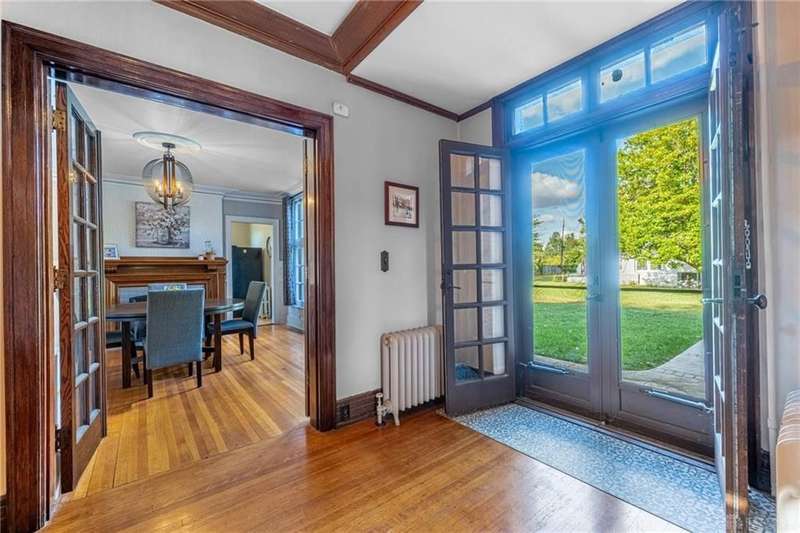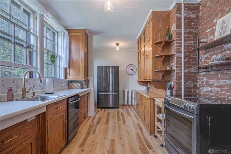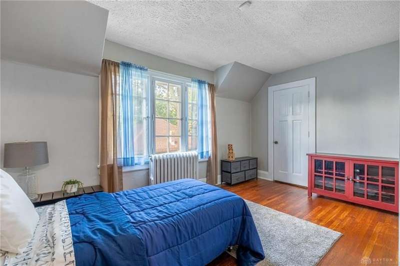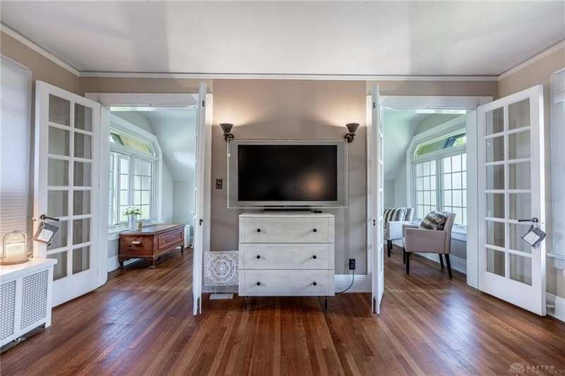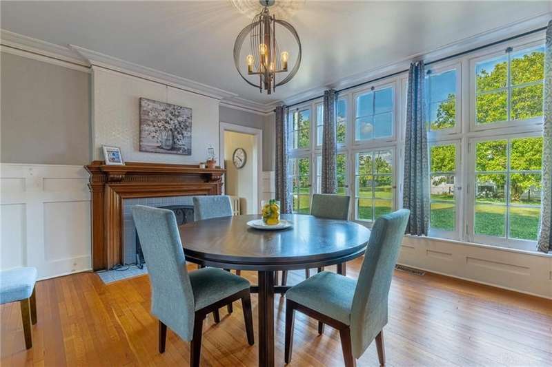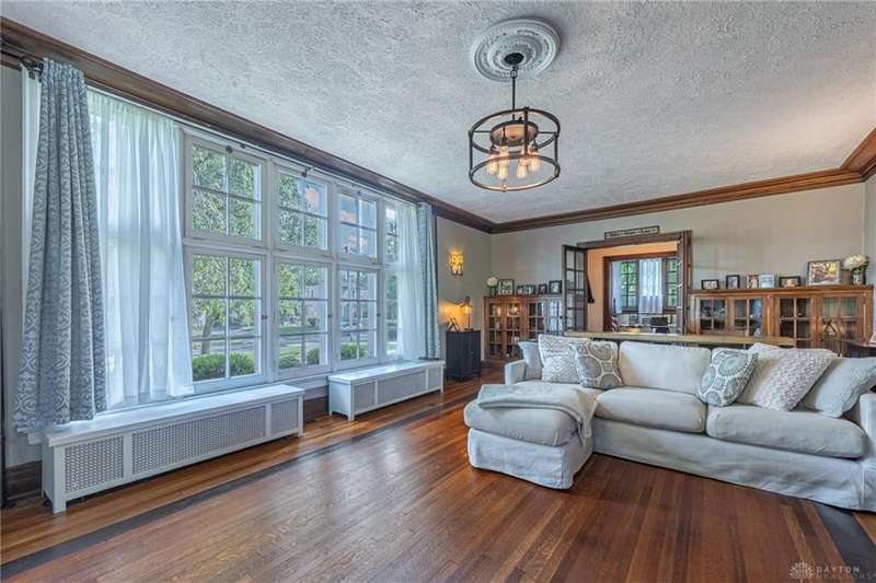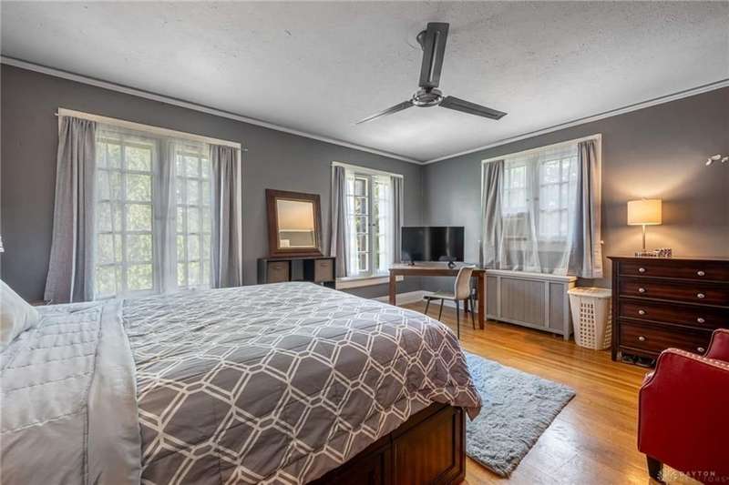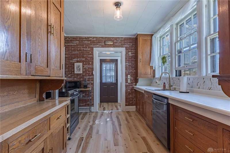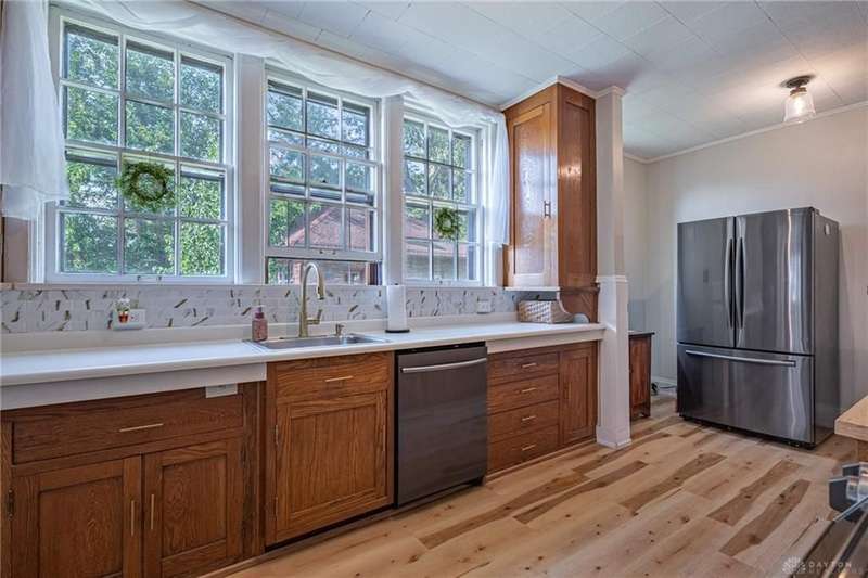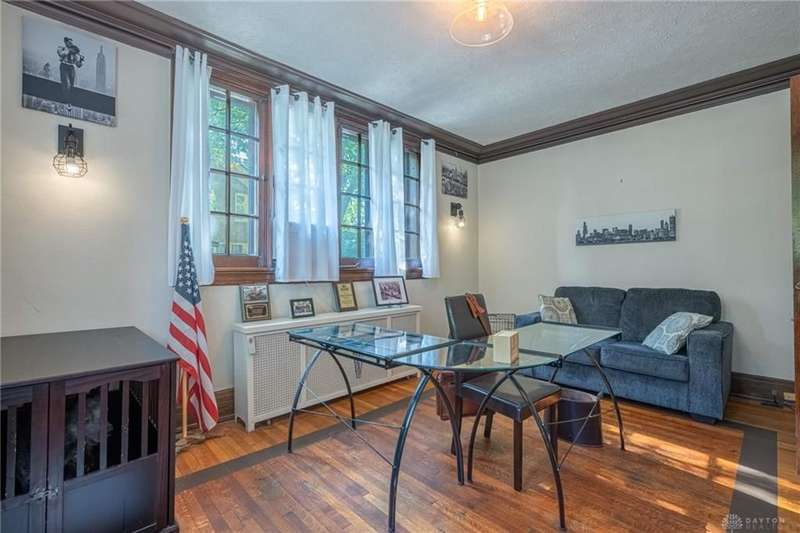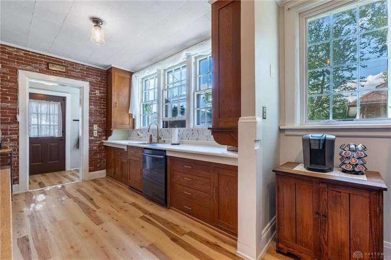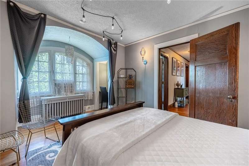 Step back in time with this beautifully restored 1900 English Tudor, a wonderful landmark in Washington Court House. Offering more than 3500 square feet of living space on a large double lot, this home pairs historic craftsmanship with thoughtful updates for today’s lifestyle.From the moment you arrive, details like the custom-stamped concrete walkway, mature landscaping, & impressive original 42” hardwood door set the tone. Inside, character abounds with four fireplaces, hand-carved mantels, seven sets of glass-paned French doors and original sconce lighting. The rich quarter-turned tiger oak floors & original bathroom tile have been carefully refinished and restored.The home offers a rare blend of grandeur & comfort with nine-foot ceilings, decorative medallions, and custom wood built-ins. The dining room showcases early 1900s style tile above the fireplace and board-and-batten wainscoting, while the powder room features a custom vanity with vessel sink. The kitchen has been updated with new flooring, fixtures, appliances and plumbing, striking a balance between modern function and historic charm.An elegant main staircase winds its way up to the second floor where you'll find the spacious sleeping quarters. The owner's retreat is designed to impress, with an entryway, private bath, fireplace, large walk-in closet and an attached nursery/dressing room. Two hallways lead to 3 additional bedrooms, each with its own large closet, a hall bath, plenty of storage and a second stairway.Outdoor spaces are open and inviting, with a large courtyard, covered dining area/side porch, and a long driveway leading to the detached 2-car garage and shed. A full attic and large basement provide excellent storage or the potential for additional living space.Lovingly maintained and recently refurbished, this one-of-a-kind home offers the opportunity to own a piece of local history — just minutes from downtown, schools, and parks.