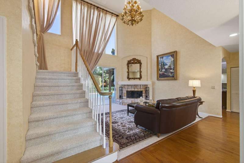 This Spacious 4 Bedroom, 3.5 Bath, 2 Car Garage, 2-Story Pool Home Offering over 3,000 sq ft of Well-Designed Family Living Space. Featuring New Roof (2024), a Formal Dining Room & Soaring Cathedral Ceilings in the Living Room w/a Wood-Burning Fireplace that Opens Directly to the Pool & Patio Area.At the Heart of the Home is the Spacious Kitchen, Boasting Abundant Cabinetry, a Large Peninsula w/Seating & an Open Layout that Flows Seamlessly into the Family Room Where you Step Outside to your Private Backyard Retreat, Where Lush Landscaping, a Tranquil Fountain, & an Oversized Saltwater/Ionized Pool Awaits. Pool is Heated, Chilled & Recently Resurfaced. 1st Floor Incudes a Private Bedroom & Full Bath, Ideal for Guests. Upstairs Retreat to the ExpansivePrimary Suite w/Sitting Room..