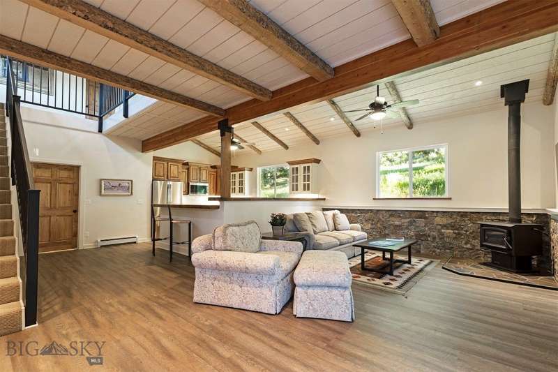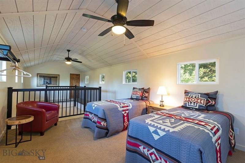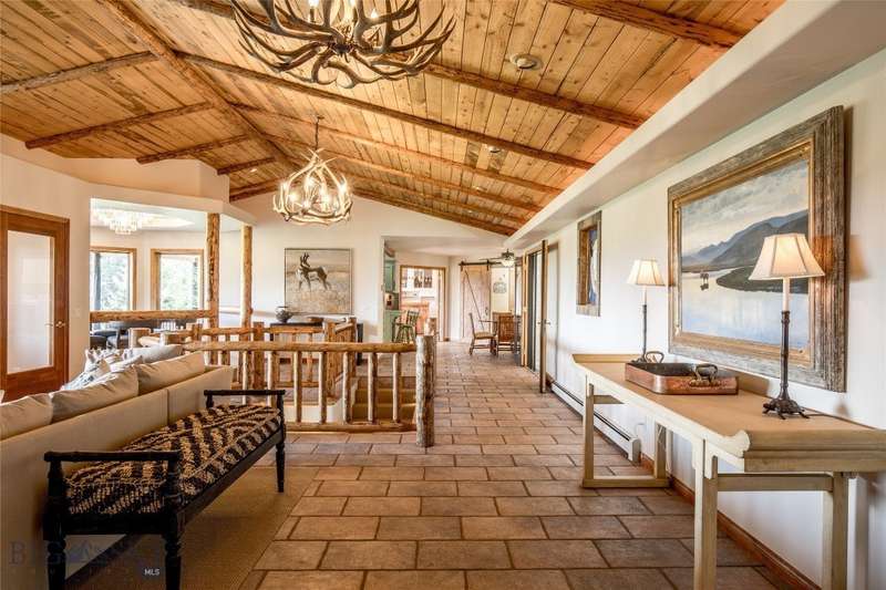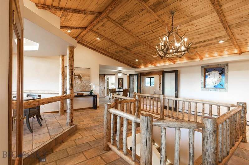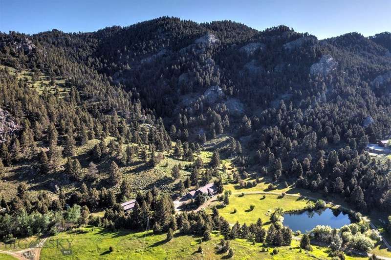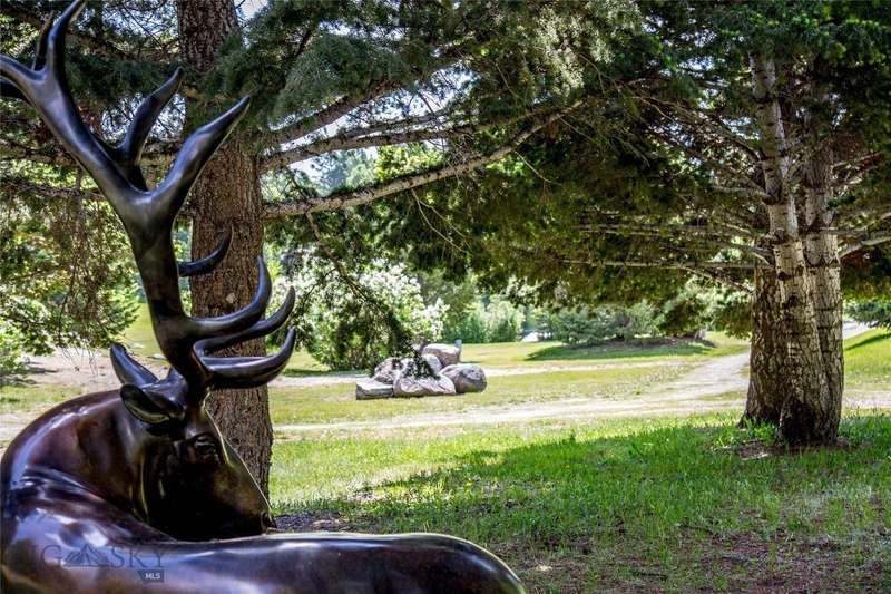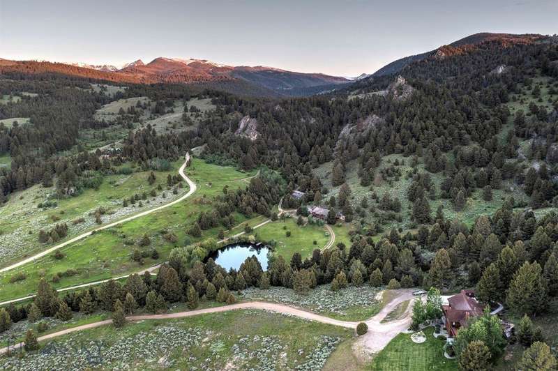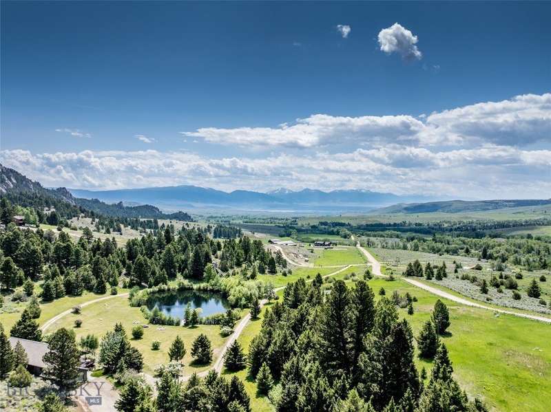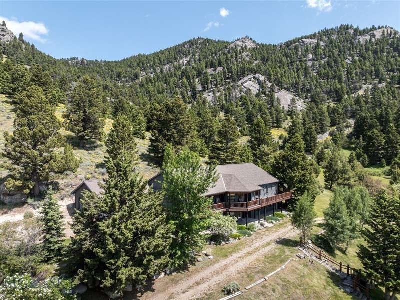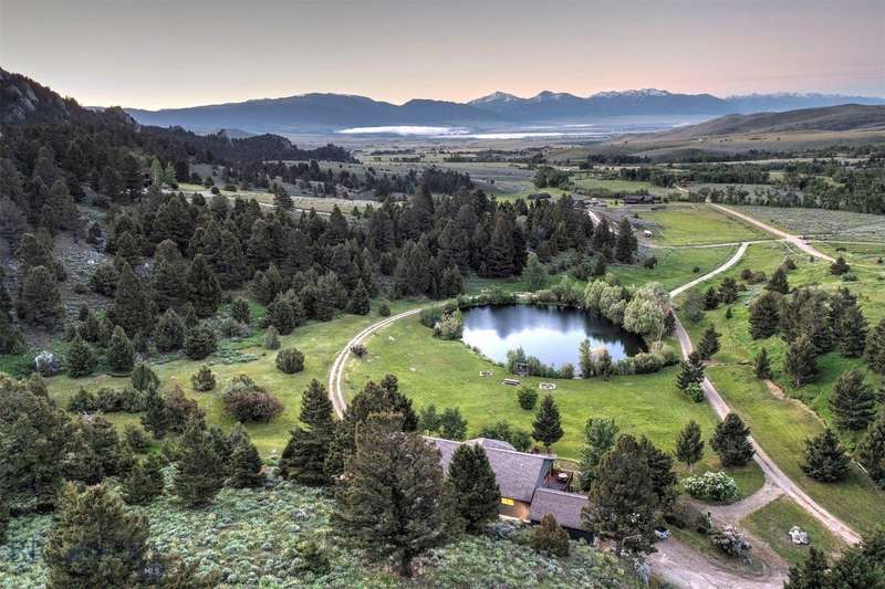 Escape to your own secluded retreat, nestled on 34 private acres in the Tobacco Root Mountains. This remarkable estate overlooks its own pond and features a spacious 4 BR/2 full baths/2 half bath, 4518 SF home with two levels. This attractive home accommodates main level living with a spacious primary suite, kitchen and living areas, laundry and garage all on the main level. The walk-out lower level is bright and cheerful with three bedrooms and a family room, and cedar lined storage room. The rooms are large with many ways to access the outdoor spaces and views. Near the main home is a barn with a 2BR apartment with loft that can sleep six adults with a large kitchen that is a great staging area for caterers. This self-sufficient apartment has its own patio and two decks, and 2 car garage with workshop, and is tucked in the trees. Nature enthusiasts will appreciate the property's border with public land, offering endless outdoor recreational opportunities. Renowned artist, Larry Zabel, created his western masterpieces in the artist studio that still sits on-site next to cascading water and a serene pond. After a long day, hike or take an ATV to your own private viewing area overlooking the dramatic, white water of North Meadow Creek. This hidden outdoor patio has views of the Madison Range and is sheltered by giant granite boulders. This legacy property has two entrances, water rights, is nestled into its own private forest with two ponds and amazing topography. Bozeman, Montana is just over an hour away.