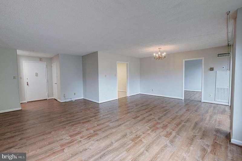 Enjoy peaceful, tree-filled views from this bright and spacious 1,117 square foot residence in the North Tower of The Promenade. Originally a one-bedroom plus den, this home has been converted into a true two-bedroom, one-bath layout. The open living and dining area flows onto a private balcony overlooking the wooded grounds, offering a serene retreat just minutes from downtown Bethesda.