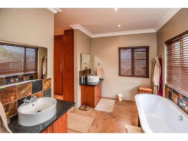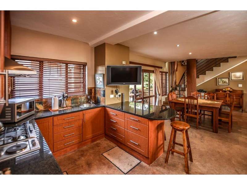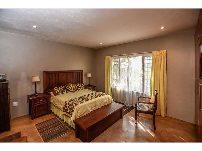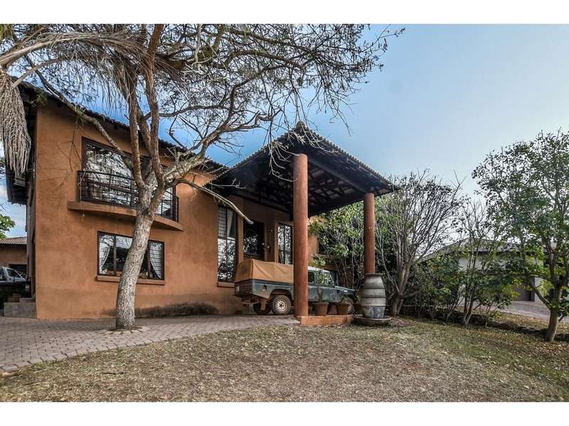 This double-story home consists of 5 bedrooms, 4 bathrooms. The ground floor includes a double volume lounge area, open plan kitchen, laundry and scullery as well a very spacious study. 2 guest bedrooms that share a bathroom with a shower and walk in closet. On the second floor is the main bedroom with a spacious full en-suite bathroom, another two bedrooms sharing a bathroom, and a pajama lounge. Next to the main house is a granny flat that has pre-paid electricity, but the main house is off-grid with solar power, a solar geyser, and a 5000-liter water tank. Ntulu Wildlife Estate offers true Lowveld living, such as Open skies, bushveld all around, with animals roaming and grazing right at your doorstep. Call us today to view this stunning home.