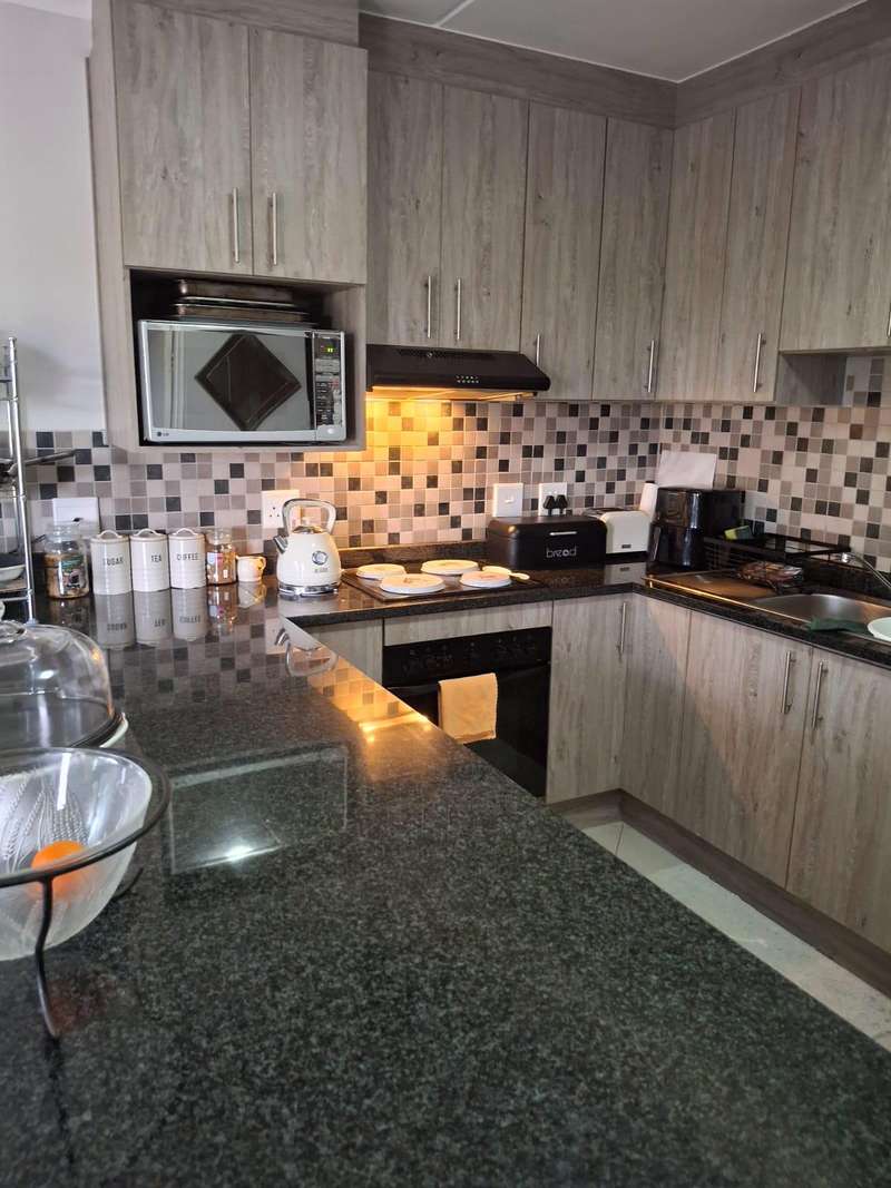 This apartment is super neat and move in ready. As you enter the apartment there is a bedroom and a full bathroom. Walking to the kitchen there is a small nook with 2 waterpoints for washing machine and dishwasher. Then the kitchen?Ǫ. What a beauty! Beautiful cabinets and enough for all your needs. The workspace is rich granite. There is space for a double fridge/freezer. The kitchen and lounge are open space with the most beautiful views. Want to braai? No problem there is a balcony with built-in braai. The main bedroom has a en-suite with shower, basin and toilet. Tiles throughout the apartment and in the bathrooms. Buhrein is known for ?Ǫ. jogging trails, parks for kids and dogs, well kept gardens and roads, Walking distance from Bossa. Call today to avoid disappointment!