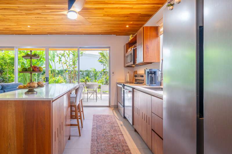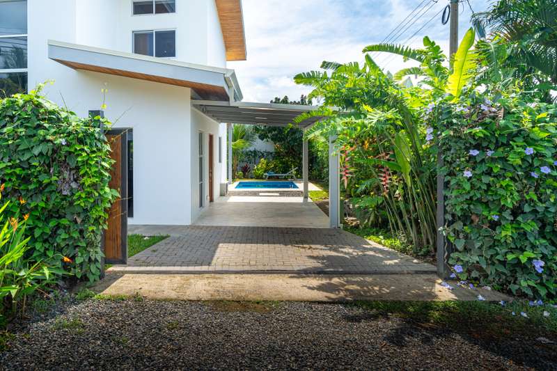 This contemporary three bedroom home blends refined design with everyday ease. Perfectly positioned on a paved road in the center of town, it offers effortless access to a coffee shop, restaurants, and local markets... while still feeling tucked away amid lush greenery and privacy.