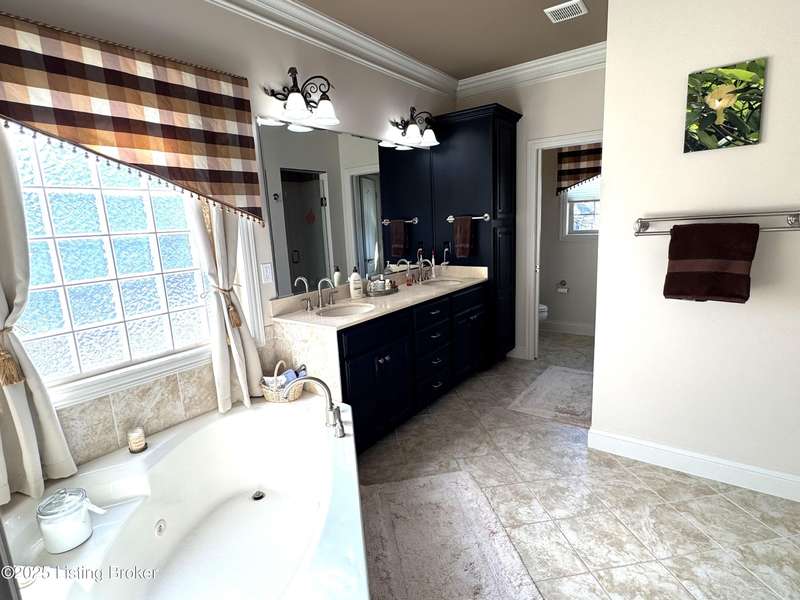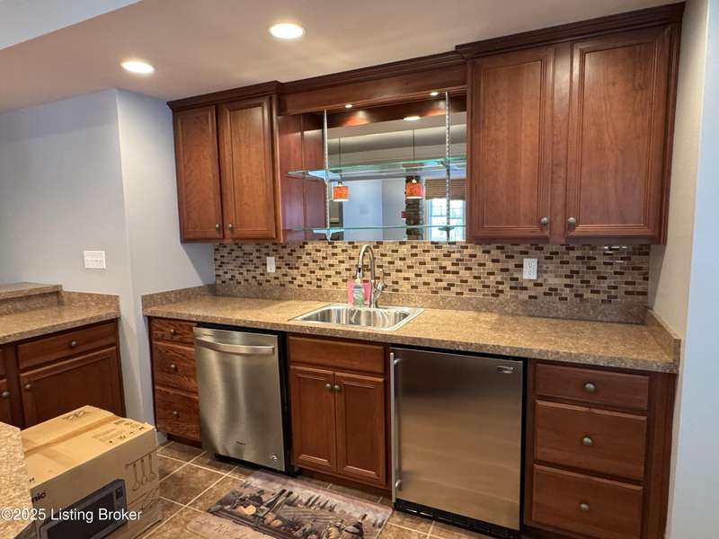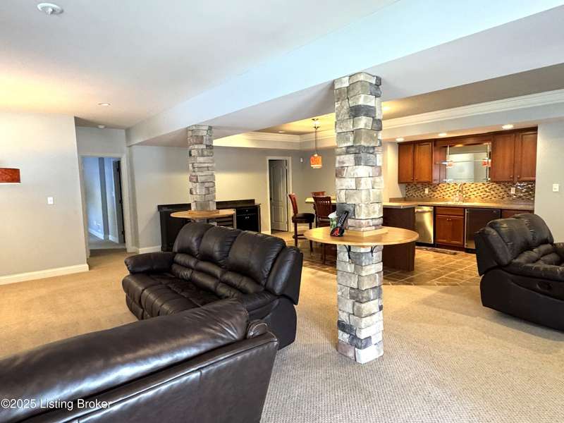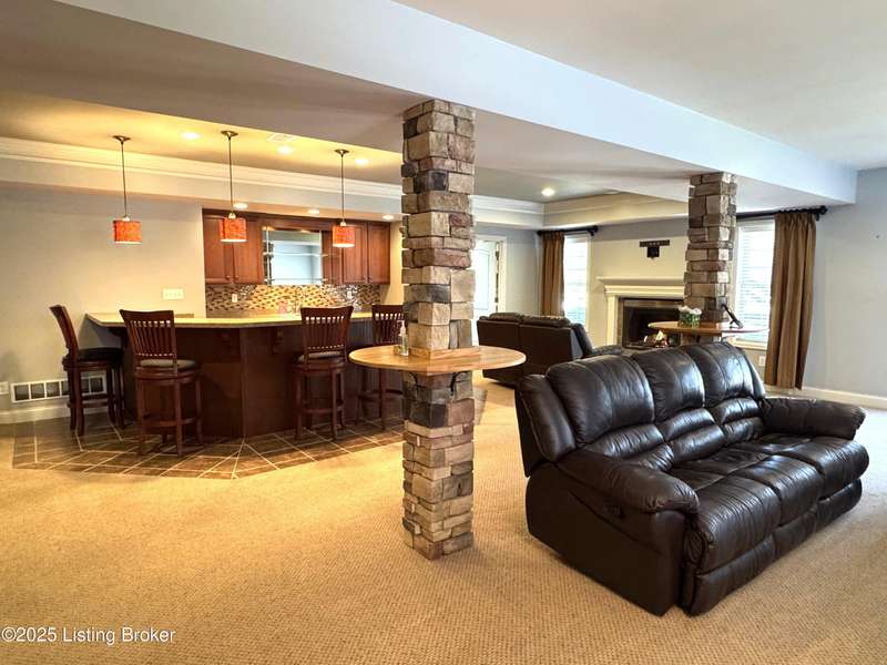 NEW LISTING! Fabulous ALL BRICK RANCH located in the desirable Reserve section of ROCK SPRINGS subdivision! 4 BEDROOMS, 3 FULL BATHS on a large cul-de-sac, private lot! So convenient to Brownsboro Road and Norton Commons shopping and festivities. COMPLETELY UPDATED and IMPECCABLE! Move right in! Welcoming entry with STUNNING VAULTED CEILINGS, abundance of HARDWOOD FLOORING, wainscotting, and crown molding detail. Oversized living room with large windows and GAS FIREPLACE. FORMAL DINING ROOM leads to bright and cheery kitchen with an abundance of CABINETS, GRANITE COUNTERTOPS, stainless appliances, pantry and island with barstool seating. Breakfast dining area with sliding doors to open COVERED DECK overlooking PARK LIKE BACKYARD and sizable patio with HOT TUB. Perfect setup for entertaining! Sizable PRIMARY BEDROOM SUITE with garden tub, separate shower, dual sink vanity, and walk in closet. Split floor plan has two additional bedrooms (or office) and full bath on the other side of home. The WALKOUT BASEMENT is completely finished with a family and recreational room, sitting area, fireplace, built in shelving, full kitchen and bar, media room, bedroom and full bathroom. Throughout this home, you will find quality fixtures, hardware, smooth ceilings, numerous closets, neutral paint colors, and large windows! This house just feels good! Nothing to do, but move right in! 3 CAR ATTACHED GARAGE. Irrigation system. Security system. There are so many updates and upgrades--see attachment on listing. This one is a gem! Call today.