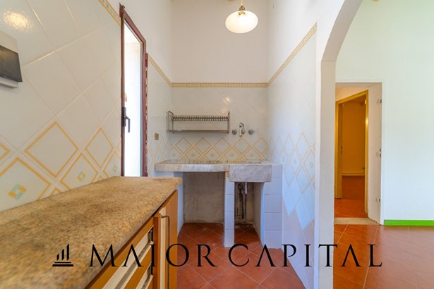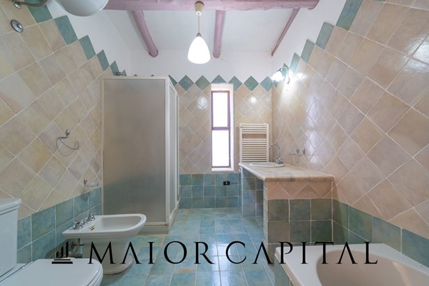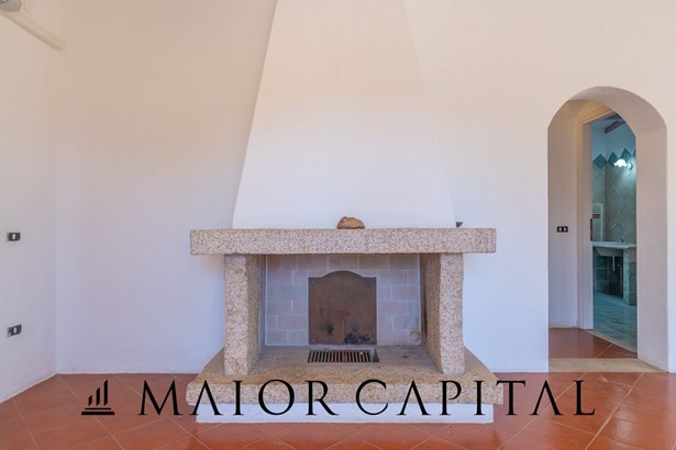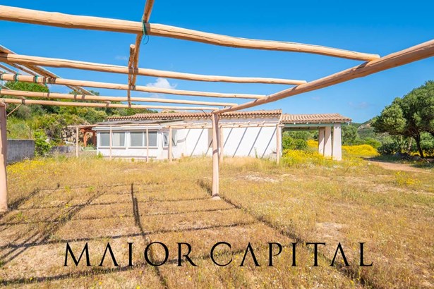 The villa, free on four sides, stands out for its spacious, bright rooms with sea views. The interiors retain the authenticity of Sardinian architecture, thanks to characteristic details such as exposed wooden beams in pastel tones. Although renovation work is required, the structure represents an ideal base for creating a customized luxury residence, perfect as a primary home or vacation house.