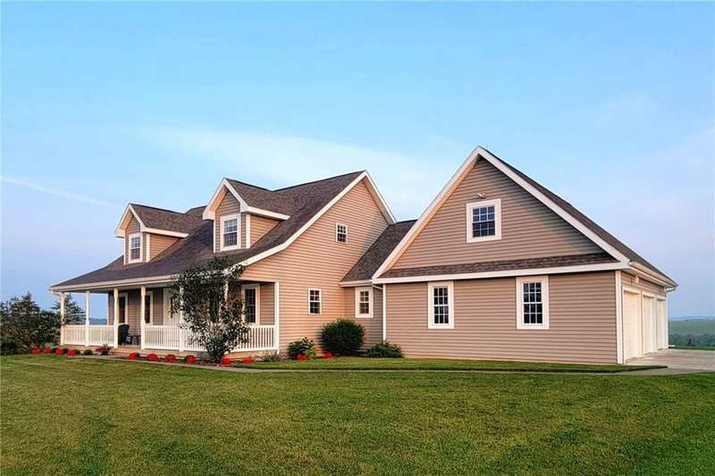 Own a home that feels like a vacation getaway, only 10 minutes from Corning and 15 minutes from Elmira! This custom-built, one-owner cape-cod sits on top of 35 acres and is "park-like" in appearance with a very private back yard, open fields, trails, wildlife, woods with a stream, gorgeous valley views, & a pond with a "beach area" for relaxing/wading. Its hilltop position keeps it in the morning sunshine above the valley fog, & it affords an almost 360-degree view of the sky for nighttime astronomy. The house is also a gem ? beautifully maintained w an open-concept living room, dining room & kitchen, and an attached 3-car garage w a mudroom entrance leading directly into the kitchen. Designed for functionality, easy upkeep & one-level living. The 1st floor includes the primary bedroom, a second room that can be an office or bedroom, a third room that can be a den or an additional 5th bedroom, & a sound-insulated laundry room w shelves for clothing sorting. It has 6" outside walls & weather-star-rated windows. The oversized garage with space above reduces the need for a shed, & numerous closets provide plenty of storage. The covered front & back porches provide protection, & face east & west, enabling views of both sunrise & sunset. The unique bathrooms have separate toilets & showers & single sinks enable extra drawers. The primary bedroom en-suite also has a separate door into the main living area to serve as the powder room for guests, reducing the number of bathrooms to be maintained. A raised bed garden is ready for fresh vegetables to be grown.The basement has been intentionally left unfinished to serve as an inclement-weather recreation area.There's even a sauna w a beach scene mural for a virtual getaway. Numerous new updates include:Pressure Tank Jun '13; Roof Aug '15; LG Washing machine Mar '15 and Dryer Jul '16; Submersible well pump Sept '16; Bosch dishwasher Feb '17; Owned Culligan water softener Mar '17; Whirlpool Refrigerator Sept '17; Kitchen floor refinished Oct '17; Sauna Nov '18; Bosch Combi Boiler- on-demand hot water Aug '20; GE Microwave Nov '20; Kitchen Aid Double Oven Range Aug '22. This rare opportunity to own a unique oasis awaits you!