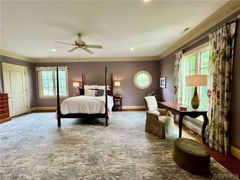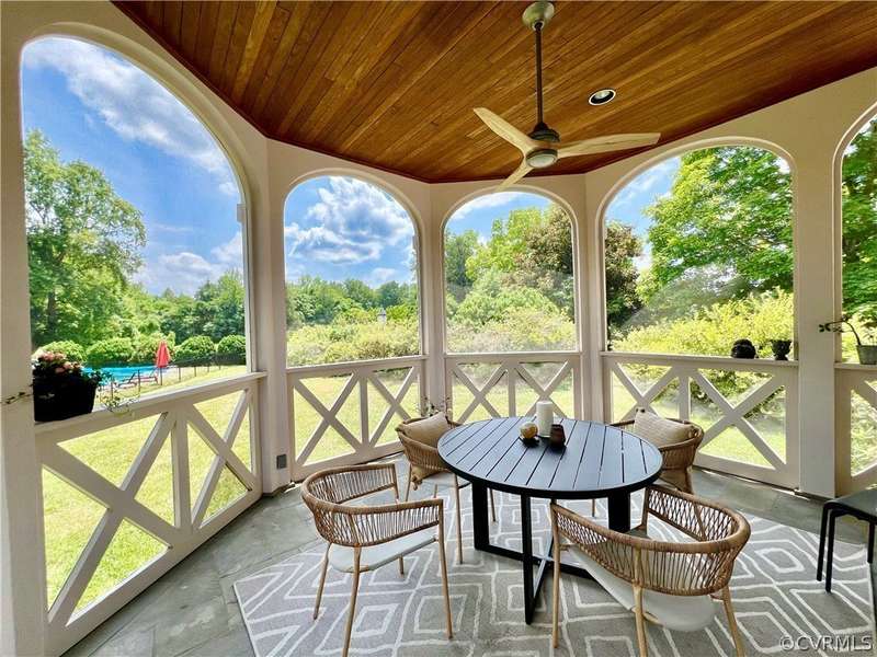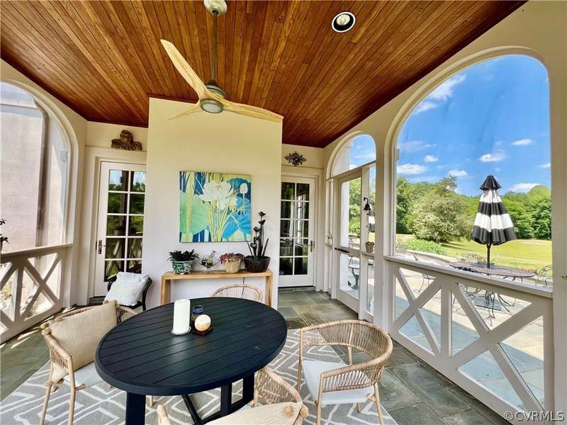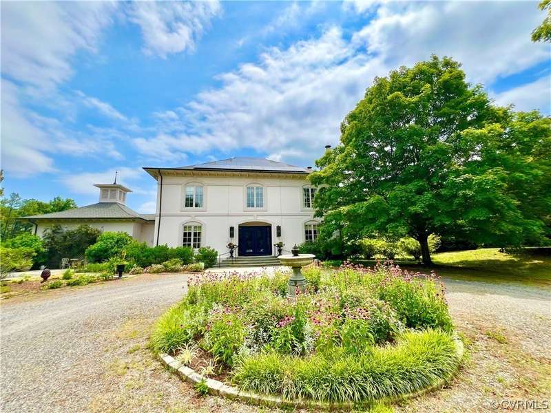 Back on the market, due to no fault of the seller. Serenity Farm welcomes you to its 109 acres with beautiful fields surrounded by majestic oaks and other hardwoods. The estate features a sophisticated 4-bedroom French Chateau, complemented by a screened porch and multiple flagstone terraces surrounded by perennial flowers. Step through the front doors to the grand foyer with its spiral staircase and admire 10 ft ceilings with heavy custom crown moulding, throughout the home, and arched doorways on the first floor. Enter the living room with marble surround fireplace. Walk into the library with built-in shelves and cabinets on 2 walls, another fireplace and accesses to the screen porch. Continue through the casual dining room with more built-ins and closets and enter the gourmet chef's kitchen, featuring a large island with a Wolf gas cooktop and downdraft vent, double ovens, built-in Sub-Zero refrigerator, breakfast nook and large laundry. Wander across the hall to the classic dining room with its stunning new lighting. Ascend the stairs to the huge primary bedroom, which features double closets and lots of natural light. The primary bath has a large double vanity, steam shower, separate tub and large closet. The 4th bedroom has built-in floor to ceiling cabinets for possible office. The property also boasts solar power and new heat pumps. Additional features include a charming detached studio with patio and retractable pergola, pump house nearby with half bath, elegant in-ground saltwater pool, large yoga deck, chicken coop and another garage and shed. The extensive landscaping, with irrigation systems in the garden and back yard, creates a lush, vibrant environment. Stroll through the woods to the 2-acre pond, perfect for tranquil moments or recreational activities. Fields of wildflowers enhance the natural charm of the property. Land Use farming has reduced the taxes to $5588/year. Whether seeking a private retreat or elegant estate to entertain, enjoy this timeless testament to luxury and nature's beauty.