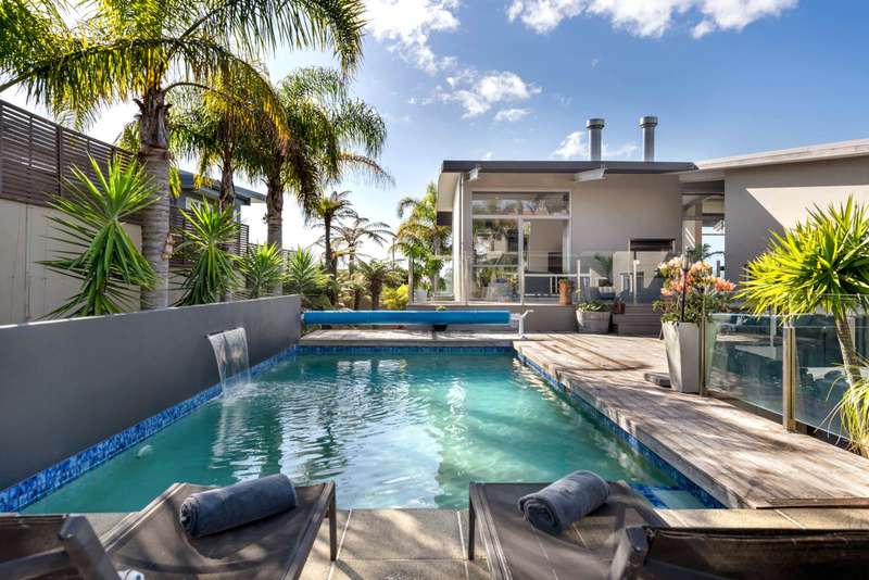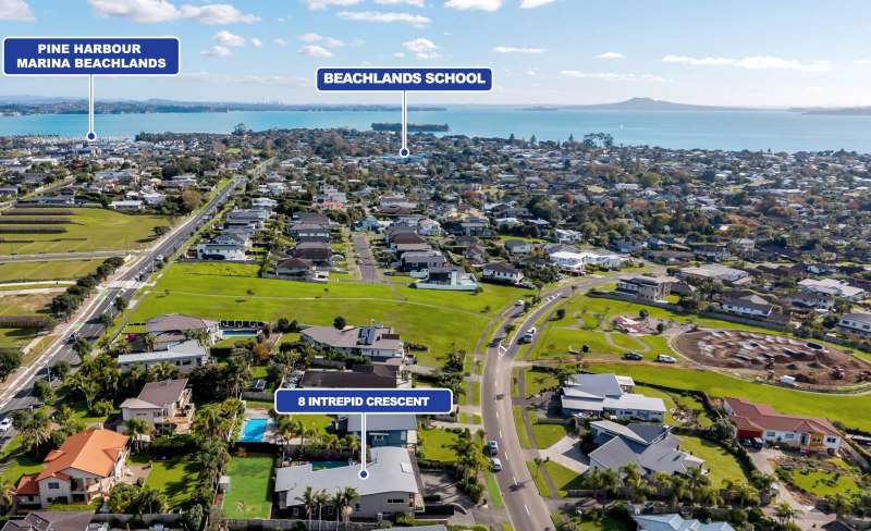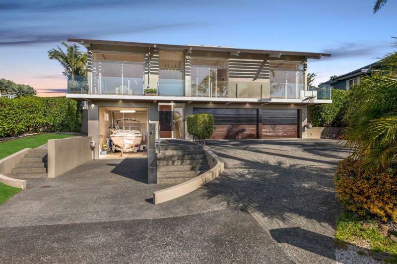 Making a striking impression on the northern slopes of Spinnaker Bay in Beachlands, on a very desirable 1159m2 section, is where you will find this rendered brick and concrete block 360m2 plus (mol) unique and exciting 5 bedroom coastal residence. This amazing home features soaring ceilings, exposed steel beams, and a vast open-plan living area that spans the entire width of the property with extensive floor-to-ceiling glass that bathes the home in natural light and enhances the feeling of spaciousness. Boasting triple car internal access garaging and plenty of off-street parking, , there's also a separate 3.4m high custom built fourth internal access garage that's big enough to secure a substantial sized boat or even a mobile home. Whether it's the high vaulted ceiling lines, the inground swimming pool and outdoor entertainment area or the impressive 180 degree views capturing both sea and park views, this house provides exciting spaces that you will love to live within for many years to come. With local parks and coastal walkways on your doorstep, the local shopping centre only 5 minutes away and Pine Harbour marina with its cafes and ferry service to downtown Auckland in close proximity, you'll count yourself lucky every single day.