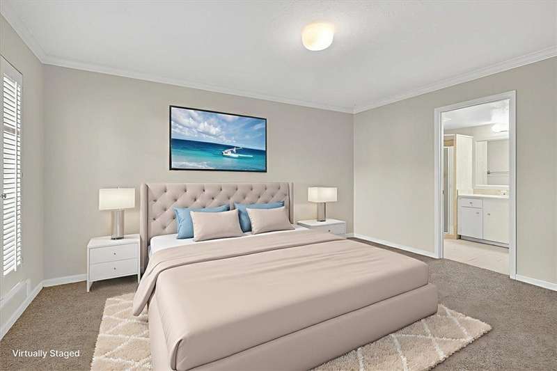 A Country Club Townhome is living at its finest! The property offers privacy and peaceful living with a gated entry and attendant, beautifully manicured grounds, a private front courtyard and a private back patio. An exceptional floor plan offers spacious living with two primary bedrooms. One primary bedroom is downstairs and the second primary bedroom is upstairs, with both offering ensuite baths. A third bedroom and third bathroom are also located upstairs. Bright and fresh, all stainless kitchen appliances, recently replaced hvac and beautiful hardwood floors make this home special. Imagine an evening stroll around the lake where you can enjoy viewing the many ducks and graceful swans that make their home here. Let beauty come into your life. An end unit, always in demand, plus a private front courtyard and a covered and private back patio that can be viewed from the living room to bring the outdoors inside. The home also offers a recently replaced AC, a double garage with alley access, and a side yard.