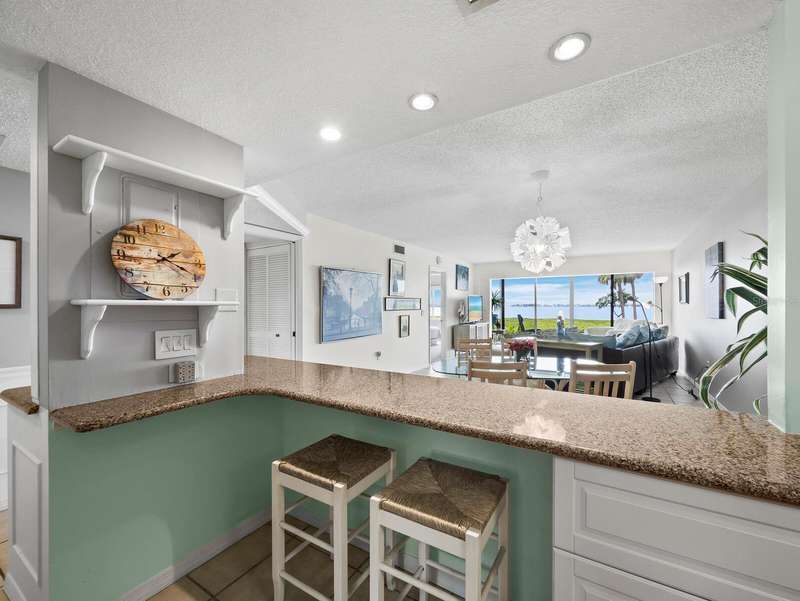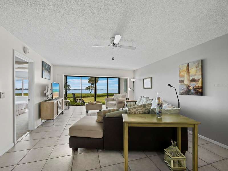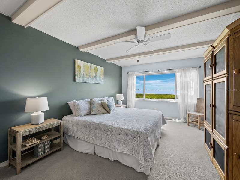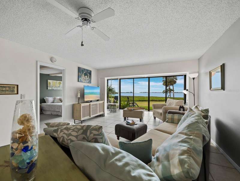 OUTSTANDING VALUE -- for a direct BAYFRONT condominium, with sweeping panoramic views to the west combined with the enjoyment of nightly sunsets. Multiple upgrades including tile floors, recessed lighting in the kitchen, a farm house sink, quartz counters, a pantry, breakfast bar and a full size washer and dryer. The A/C is 6 months new as is the hot water heater. The guest bedroom has a Murphy bed providing ample room for a home office. This two-bedroom, two-bath beautifully decorated residence is being offered turnkey furnished. The roof on the "D" building is 2 years old. Mount Vernon has incredible amenities such as a clubhouse with a library, meeting rooms for any occasion, a ballroom, a billiards room, pool, tennis, pickleball, fitness room, shuffleboard, bocce, kayak launching area, boat dockage and more. Restaurants are close by, and Coquina Beach on Anna Maria Island is only four miles away. This is a 55+ community. The sale is subject to honoring a tenant already in place from December 1, 2025, to March 31, 2026, for providing instant income. Life does not get any better than this at any price!
