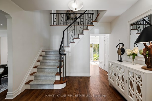 Welcome to 17 Elstree Rd, a stunning home set on one of the most coveted & tranquil tree-lined streets in Humber Valley Village. With over 81 ft of frontage on a lush,mature lot,this residence combines timeless elegance w/modern comfort in a truly unbeatable location.Step onto the covered front porch & into a sun-filled foyer featuring custom closets & gleaming hrdwd flrs. The L/R offers a wall of windows overlooking the front gardens & a custom Rumford fireplace w/stone surround - perfect for both entertaining & quiet evenings. The formal D/R impresses w/hrdwd flrs, bespoke millwork, & a statement chandelier,all overlooking the priv backyard.The kit features hrwd flrs,stone counters & backsplash, 6 s/s appliances,abundant cabinetry,a breakfast area, & a w/o to the backyard oasis. A main-flr F/R completes the flow,offering a warm space to gather & relax.Upstairs, you'll find 3 spacious bdrms, incl a primary retreat w/a w-in closet, custom b/ins, & a spa-inspired 5pc ens w/garden views.The L/L expands the living space w/a generous rec room,gas fireplace,above-grade windows, & a dedicated guest br or office paired w/a nearby 3pc bath - ideal for a nanny or in-law suite. A bright laundry area,ample storage, & a cold rm add convenience & function.Outside,the inground salt water pool,landscaped gardens, & towering trees create a private sanctuary, complemented by a dbl-car garage & driveway prkg for four. This home represents an exceptional opportunity to live on one of the best streets in Humber Valley Village,surrounded by top-ranked schools,incl Humber Valley Village JMS, Richview Collegiate Institute & All Saints Catholic School.Walk to the newly renovated Humbertown Shopping Centre & James Gardens.Renowned golf clubs, incl St. George's Golf & Country Club,Islington Golf Club & Weston Golf Club,are nearby.W/quick access to the Bloor St Subway line, Pearson Int Airport,and major hwys, 17 Elstree Rd offers the perfect balance of serene family living & city convenience.