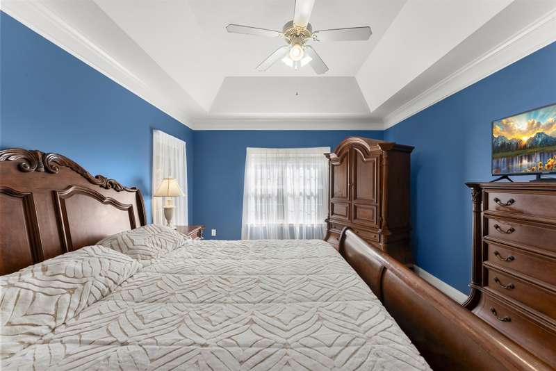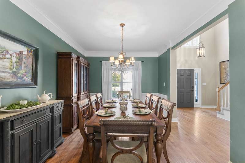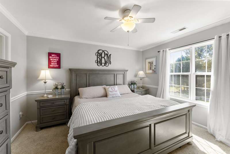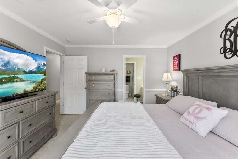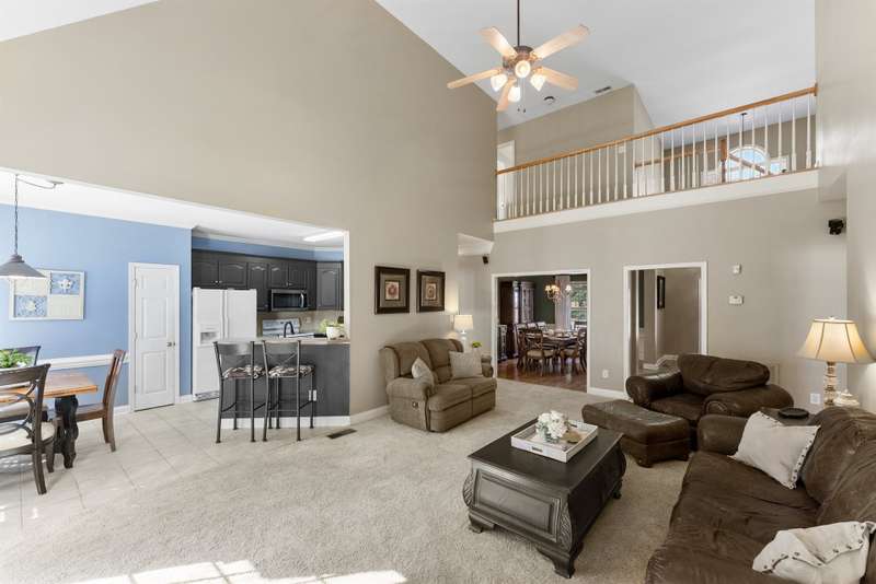 This stunning custom 4-sided brick home offers over 2,700 square feet of living space, featuring 5 spacious bedrooms with walk-in closets and 3 full bathrooms, ideal for a large or growing family. From the moment you step inside, you'll be impressed by the sky-high ceilings, beautiful hardwood floors, crown moldings, and the inviting warmth of a gas fireplace in the 2 story living area. The open layout provides plenty of room for everyone to spread out while still feeling connected, and the natural light throughout makes the home feel bright and welcoming. A rare en-suite guest bedroom on the main floor tucked on the backside of the house. Outside, the flat front and back yards are perfect for kids to play, pets to run, or for entertaining. The 2-car garage offers convenience and extra storage. Located in a desirable neighborhood just off Gaston Day School Road, you'll enjoy sidewalks, walking trails, and a community playground area. Add in the highly rated school district and unbeatable location close to shopping, dining, and schools, and this home truly offers the best combination of comfort, space, and everyday convenience. This home has so much to offer!