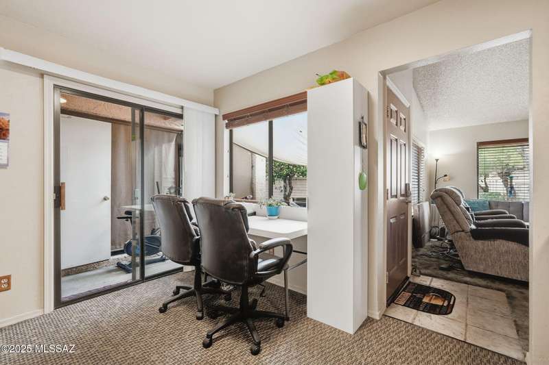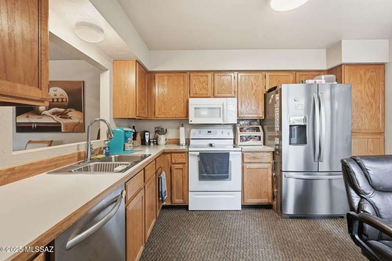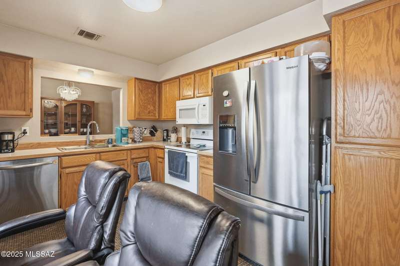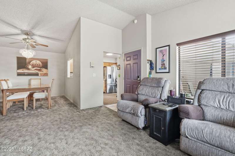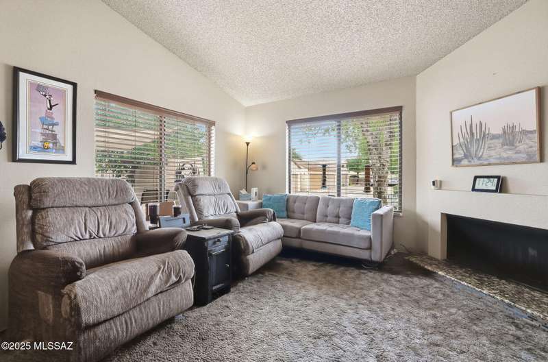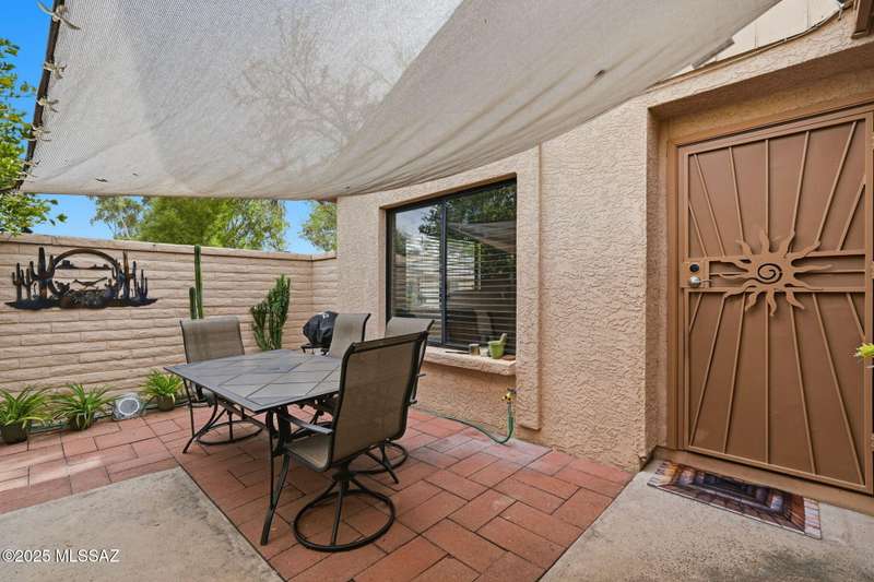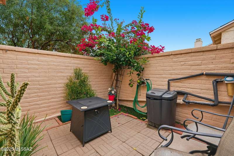 Rare 3-bedroom townhouse in the desirable gated community of Casitas De Palo Santo! Step into the inviting front courtyard adorned with colorful plantings, brick paver patio, and low-maintenance artificial turf. Inside, you'll find a spacious living room with vaulted ceilings and a cozy wood-burning fireplace, creating a warm and welcoming ambiance. The kitchen offers abundant cabinetry and generous counter space--perfect for everyday living and entertaining. Enjoy the cheerful back patio with pavers and a lemon tree, ideal for relaxing outdoors. Additional highlights include HVAC replaced in 2019, water heater in 2022, newer water softener and filtration system, and access to the refreshing community pool. A wonderful opportunity in a sought-after location!