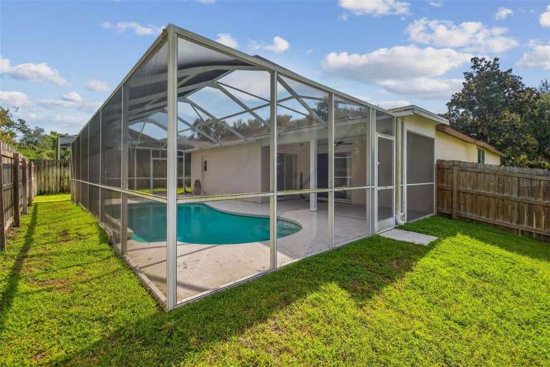 Welcome to this beautifully maintained, move-in ready POOL HOME in the highly desirable area of Valrico with NO CDD and an incredibly low HOA of just $265 annually! Recent updates include a BRAND-NEW HVAC SYSTEM (AUGUST 2025) AND A NEW WATER HEATER (2025), providing peace of mind for years to come. This home enters into a welcoming and versatile front space that serves perfectly as a formal living and dining area, which can also be used for a game or entertainment space. The DEDICATED OFFICE/FLEX SPACE is perfect for those who work from home or need a homework area. Flowing into the kitchen with breakfast nook, the layout is enhanced with NEW LIGHT FIXTURES and NEW PAINT with trending tones that create a WARM AND INVITING ATMOSPHERE. The kitchen includes ample cabinetry, plenty of counter space, and bar-height seating, making it an ideal space for entertaining. Its seamless flow to the living area and through the wall of sliding glass doors to the COVERED LANAI AND PRIVATE POOL, brings the outdoors in during the beautiful months in the upcoming season. The primary suite is generously sized and includes a walk-in closet and an en-suite bathroom complete with dual vanities, a soaking tub, and a walk-in shower. Outdoor living is a HUGE BONUS, with A LARGE FULLY FENCED BACKYARD, and ample space for relaxation. Situated on a quiet, tree-lined street, this property offers convenience to top-rated schools, major highways including I-75, the Selmon Expressway, best hospitals, shopping, dining, and more. With prime affordability and a fantastic location, this is Valrico living at its finest!