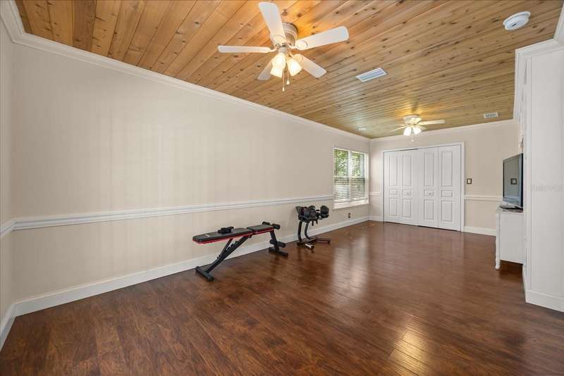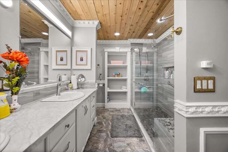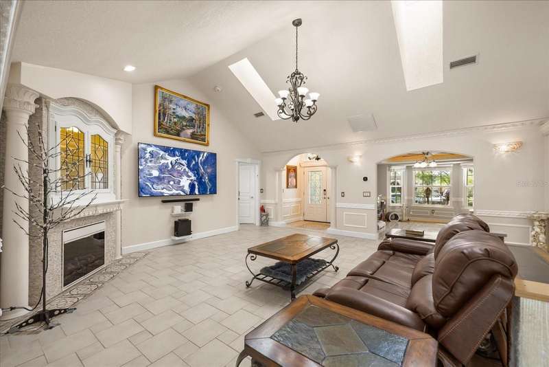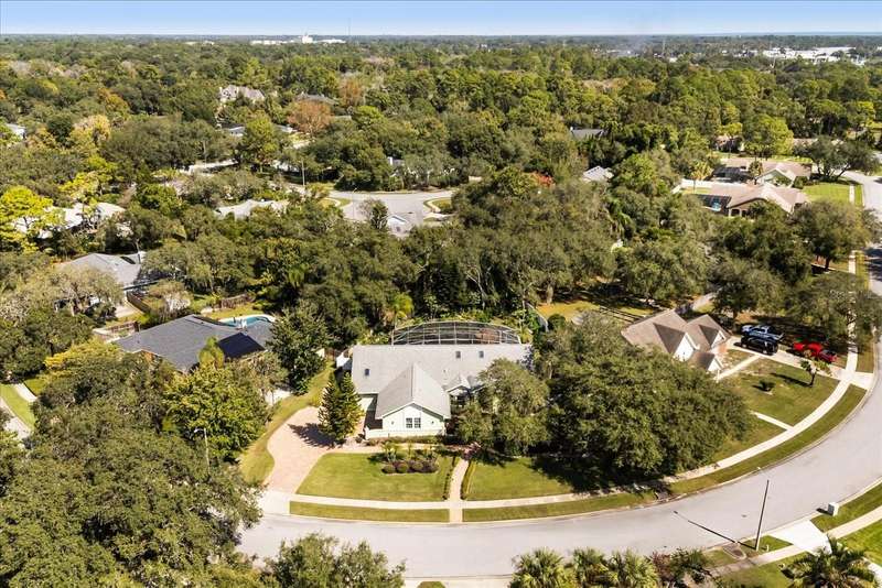 Welcome to your private paradise in the heart of Lake Mary! This stunning move-in ready pool home sits on a beautifully landscaped ½-acre lot is located in the highly desirable community of Country Downs. This home is truly unique - featuring a private in-law suite with a separate entrance—perfect for guests, multi-generational living, or a home office!! Step through the doors and feel the custom craftsmanship with tray ceilings, wainscoting, tongue-and-groove details, elegant molding, built-ins, and large open floor plan perfect for entertaining. The old-world style gourmet kitchen steals the show with a massive granite island and open flow to the living and family rooms. Retreat to the oversized Primary Suite showcasing vaulted ceilings, en-suite bathroom with dual vanity and spa-like shower, and private sitting room with custom built-ins. Entertain year-round in your resort-style backyard featuring a Vulcan Pool Surround, Tiki Bar with Grill, Propane Fireplace, and Tropical Garden bursting with life! Enjoy picking fresh fruit -from your backyard oasis featuring a wide variety of fruit trees and plants including mango, avocado, jackfruit, lychee, papaya, starfruit, guava, pomegranate, sugar apple, banana varieties, and many more. Modern comfort meets innovation with smart home features such as a camera doorbell, smart light switches, and a smart thermostat. Major upgrades include: Roof (2020), AC (2023), Hot Water Heater (2025), Solar Pool Heater (2020), Pool Deck Resurfacing (2024), and so much more! With its blend of luxury, comfort, and outdoor living, this home delivers the ultimate Florida lifestyle experience!
