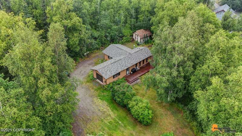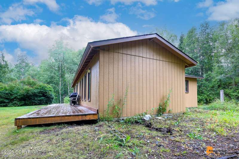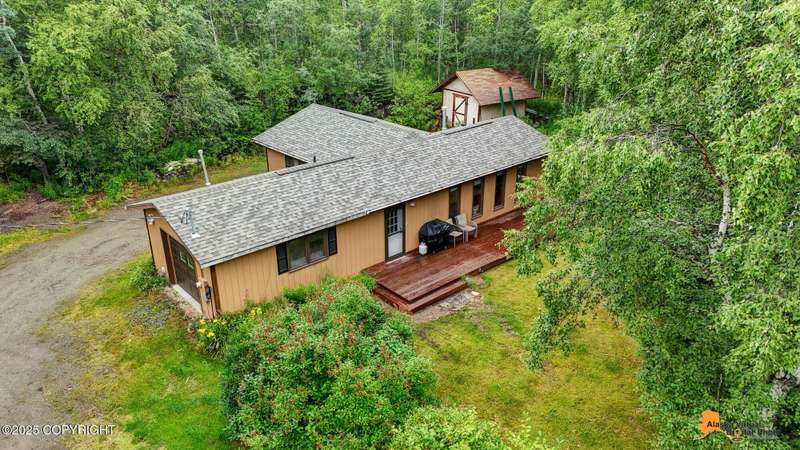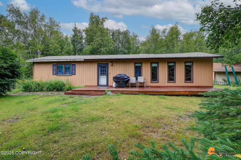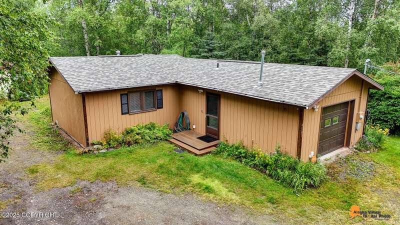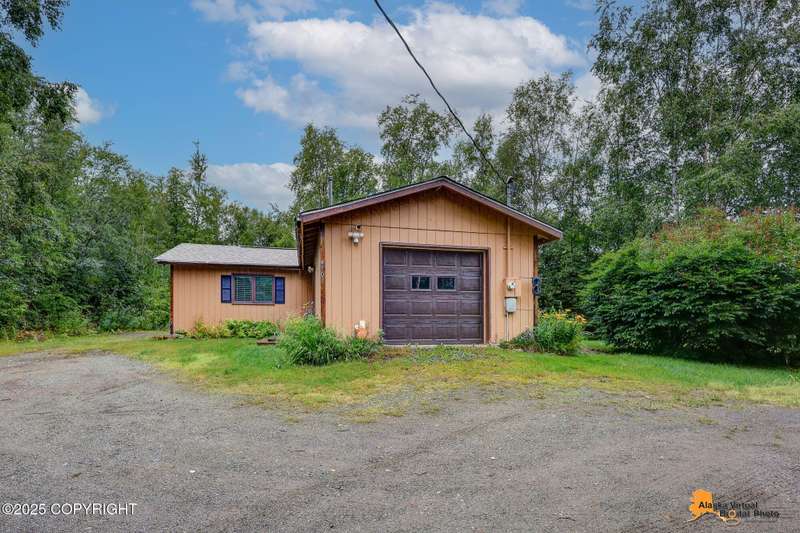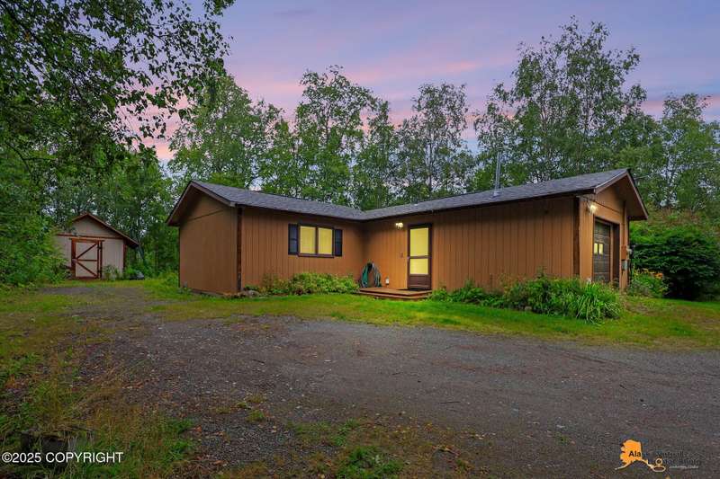 This 832 square-foot ranch style home sits on 1.76 acres in a central location to both Palmer and Wasilla. The bathroom has been updated as well as a newer water heater 2022, furnace 2023, garage door 2023 and a new roof in 2025. The one-car garage and shed allows room for storage and there is plenty of space of RV parking. There is a good size deck for outdoor entertaining. Furniture can stay, making this an ideal opportunity for first-time home buyers.