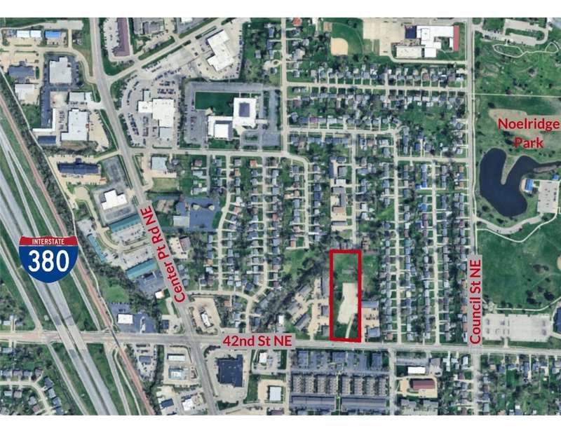 2.56 acre multi-family or office vacant land available, located on 42nd St NE, two blocks off of I-380 betweenCenter Point Rd and Council St. Collector Street traffic count is 8,600 cars per day. Current zoning is SuburbanResidential Medium Single Unit. Adjoining parcels are Traditional Mixed Use Limited, and Traditional ResidentialHigh.