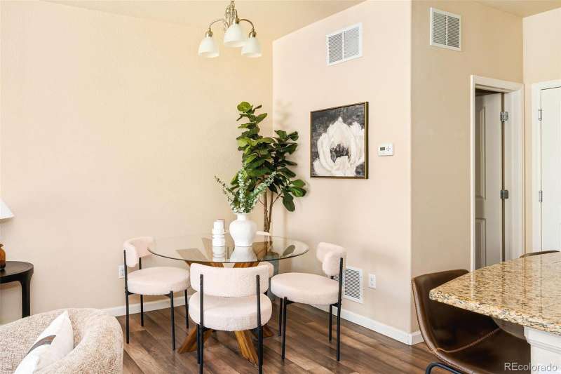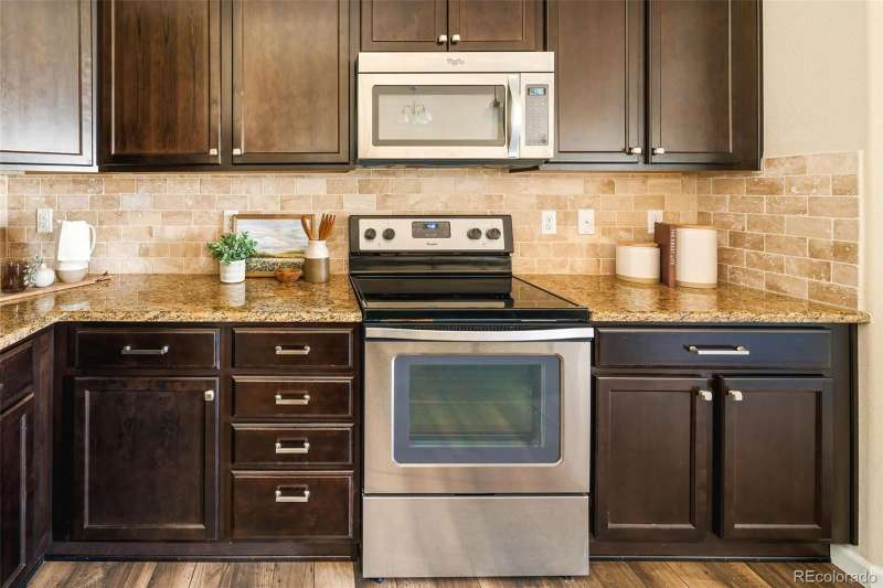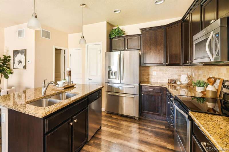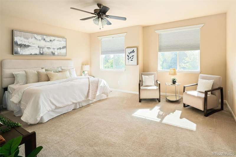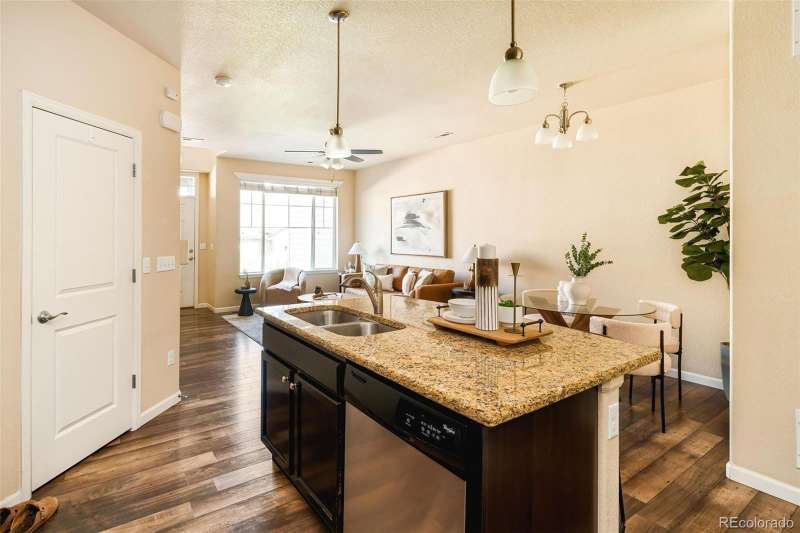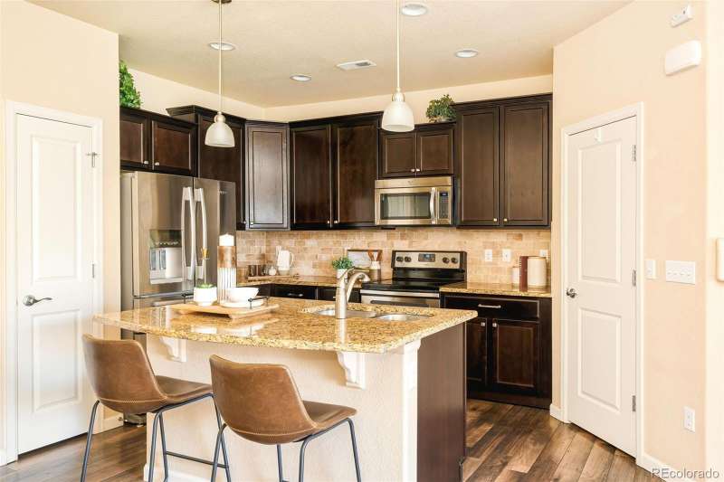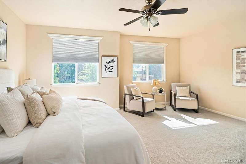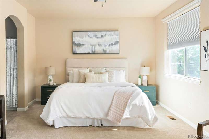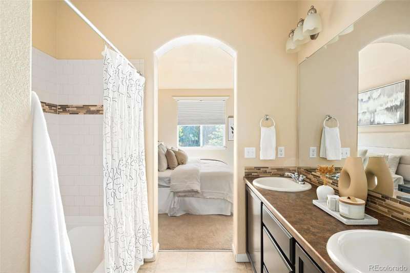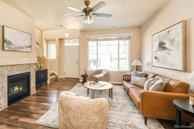 Dont miss this updated and inviting townhome in the beautiful Shoenberg Farms Village community! Tucked away on a quiet greenbelt, this home enjoys a peaceful setting within the neighborhood. Inside, youll find a spacious, light-filled living room with a cozy gas fireplace. The kitchen offers great functionality with granite counters, stainless steel appliances, counter seating, a pantry, and plenty of storage. Theres also a nice dining area just off the kitchenperfect for everyday meals or entertaining. Upstairs, youll find a spacious primary bedroom with western exposure and an abundance of natural light. It includes a generous 5-piece bath and a walk-in closet. The second bedroom also features its own ensuite full size bathroom and overlooks the communitys green space. Additional highlights include central A/C, ceiling fans, wood vinyl floors and crawl space access through the pantryhome to the radon mitigation system and sump pumpwith extra room for storage, plus an attached 2-car garage. This home is truly move-in ready! Shoenberg Farms is a quiet, well-kept community with a park and playground. Also nearby are Faversham Park, Tepper Fields and located just minutes from shops, restaurants, Olde Town Arvada, light rail, and major highways. This is the one youve been waiting forstylish, spacious, and perfectly located in one of the area's most welcoming communities!