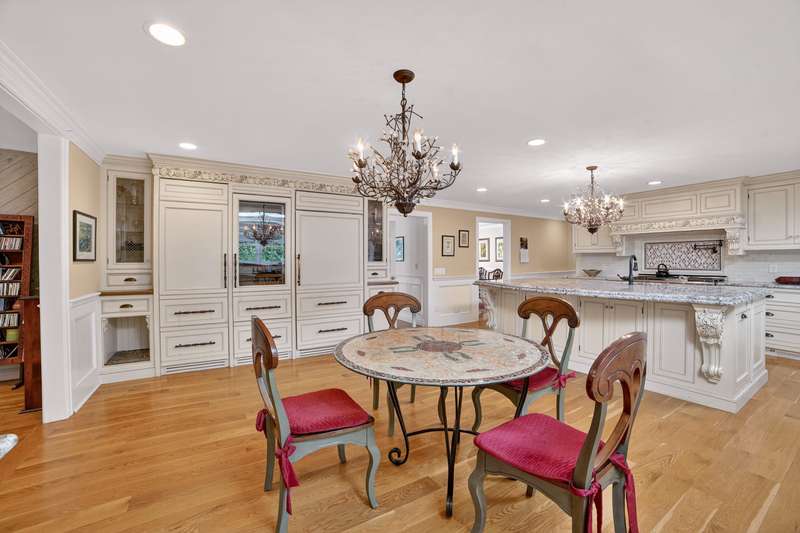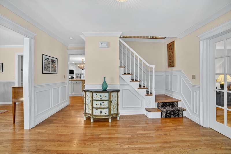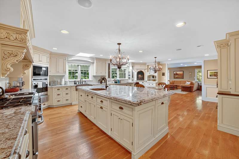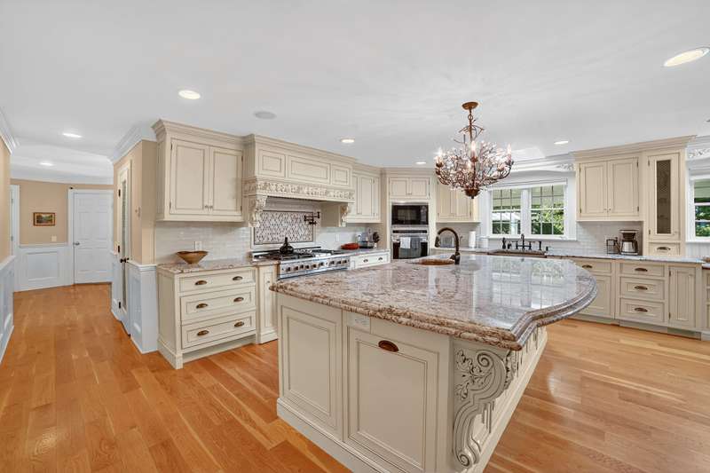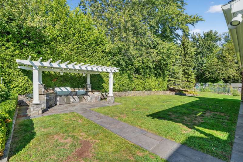 Enter through stately stone pillars and wrought iron gates to this exquisite Center Hall Colonial, perfectly set on nearly one acre of stunning, level, and fully fenced property. Every inch of this residence has been thoughtfully designed to offer an extraordinary combination of elegance, comfort, and functionality. The magnificent gourmet kitchen is a chefs dream, featuring an 11-foot center island, Wolf range, dual dishwashers, wine refrigerator, warming drawer, and double sinksan entertainers paradise with every amenity imaginable. The kitchen flows seamlessly into an oversized family room, a grand yet inviting space anchored by a beautiful fireplace and framed by serene wooded viewsperfect for relaxing or gathering with family and friends. Upstairs, retreat to the luxurious primary suite with a spa-inspired bath and spacious walk-in closets. The home also features a generous bonus room above the garage, accessible from both the main level and the primary suiteideal for a private home office, gym, or creative studio. Additional bedrooms on the second level provide comfort and style for family and guests alike. Step outside to your own private oasis, where the beautifully landscaped grounds include a charming gardening area, an in-ground pool, and a built-in grill and dining areaperfect for alfresco entertaining and summer gatherings. Expansive lawns provide plenty of space for play or relaxation, while an additional driveway offers ample parking for hosting large events or special occasions. The expansive lower level offers exceptional space for recreation, fitness, or media enjoyment, along with abundant storage. Additional highlights include a new five-zone Buderus furnace and an attached two-car garage. From the grand entry to the manicured grounds, this remarkable property embodies timeless sophistication, resort-style amenities, and the perfect balance of privacy and luxury living.