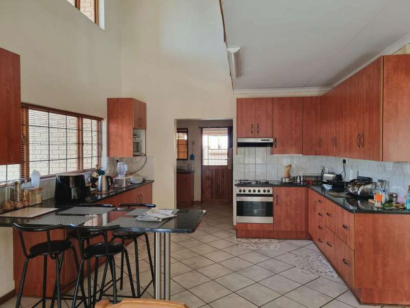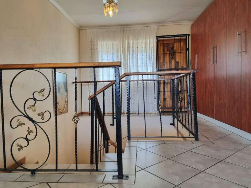 An upmarket, low maintenance, light face brick, double storey home is situated in a well-established area of White River. Entrance hall into a spacious open plan living space with steps down to the formal lounge. The space flows beautifully to the dining room and open plan kitchen. The kitchen has black granite tops and many cupboards, with a seating area for those early morning breakfasts! There is a scullery/laundry area plus a pantry. Fifth bedroom/staff accommodation consists of one room and bathroom with a shower. The dining room leads to the enclosed patio with built in braai, overlooking a sparkling pool and neat garden. Ideal for entertaining. Guest toilet and study available. A beautiful staircase leads to the upstairs cosy, informal TV lounge. Upstairs there are three spacious bedrooms with each bedroom having its own on-suite bathroom. The main bedroom has stunning views, many built in cupboards, air conditioner, and a lovely spacious bathroom. 80sqm flat next to the main house consists of an open plan kitchen/lounge. Two bedrooms and two bathrooms. A perfect opportunity for a rental income or for extended family! Double automated lock up garages. Space for additional parking. Well paved areas. Water tank that collects grey water from the gutters for the garden. The property is fully walled and gated with electric fencing, beams and alarm system. Definitely a must see!
