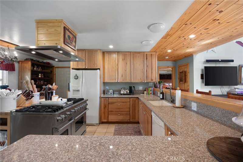 The kitchen is thoughtfully equipped with a Viking range, granite countertops, and room to cook while still staying connected to the views and conversation.