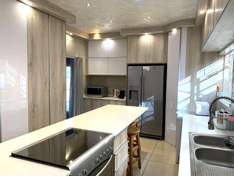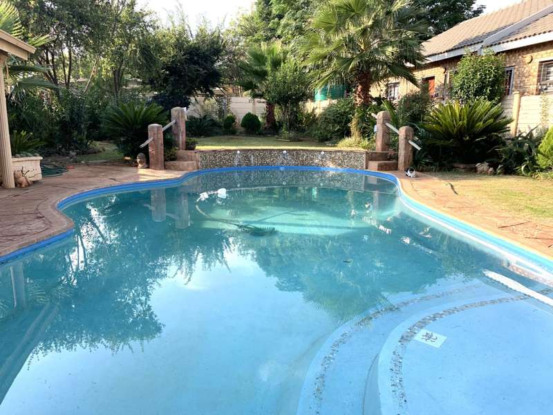 Excellent opportunity for a comfortable and leisurely family life! Grab this beautiful home now. Enter through a lush garden into the entrance hall and step into this spacious home. The Kitchen is ultra-modern and has two stoves, one electric and one gas stove, ideal for cooking and baking. The home has a very spacious dining room where the family can gather around the dining room table to enjoy some valued family time together. The lounge is large, tranquil and serene and is very suited to relaxed visits with guests or family. The spacious TV room is adjacent to the covered Lapa, which has a jacuzzi as well as a built-in braai. The door leads onto the swimming pool and established garden at the back. The home has four bedrooms with three spacious bathrooms. The main bedroom?ÇÖs bathroom is en-suite and has a walk-through cupboard with ample packing and hanging space.