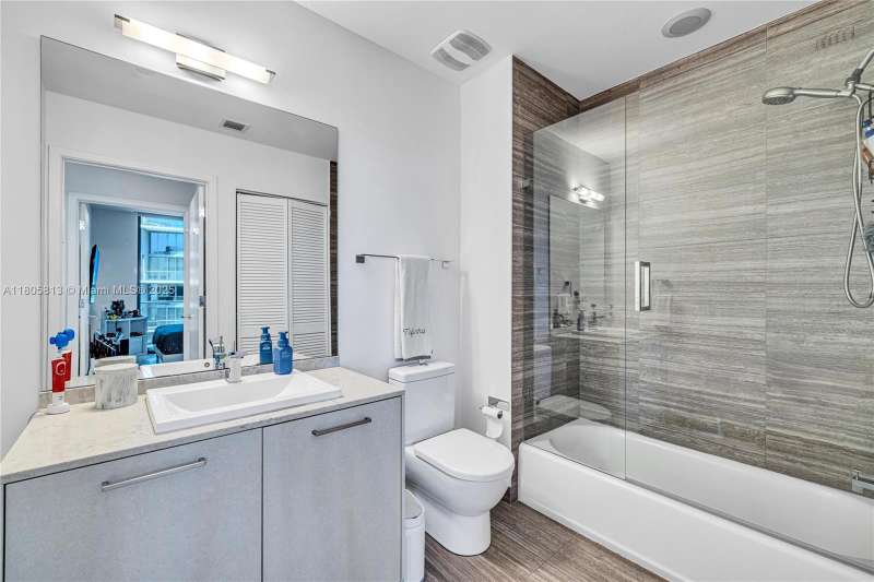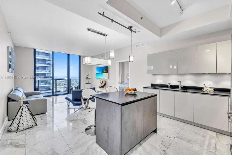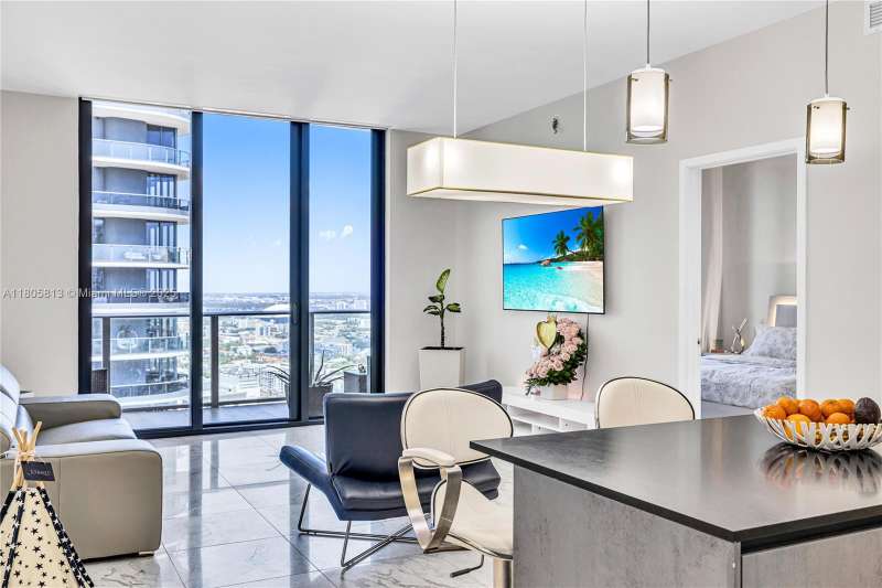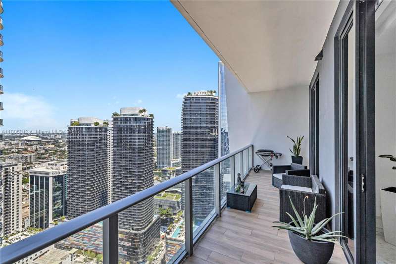 This stunning architectural gem seamlessly combines luxury with modern elegance. Situated on the 48th floor, this 2-bedroom, 3-bath Lower Penthouse boasts expansive floor-to-ceiling glass walls that frame panoramic views of the Miami skyline, alongside a generous balcony perfect for outdoor relaxation. The interiors are adorned with premium finishes, including porcelain flooring and a sleek European kitchen. Exceptional amenities include an indoor heated pool with retractable glass walls that open to an outdoor pool and Jacuzzi, a sun deck, and a rooftop terrace. The exclusive Club at 1010 features a two-story spa with a Hammam Turkish steam bath, a state-of-the-art fitness center, and a running track, offering an unparalleled lifestyle of comfort and convenience.